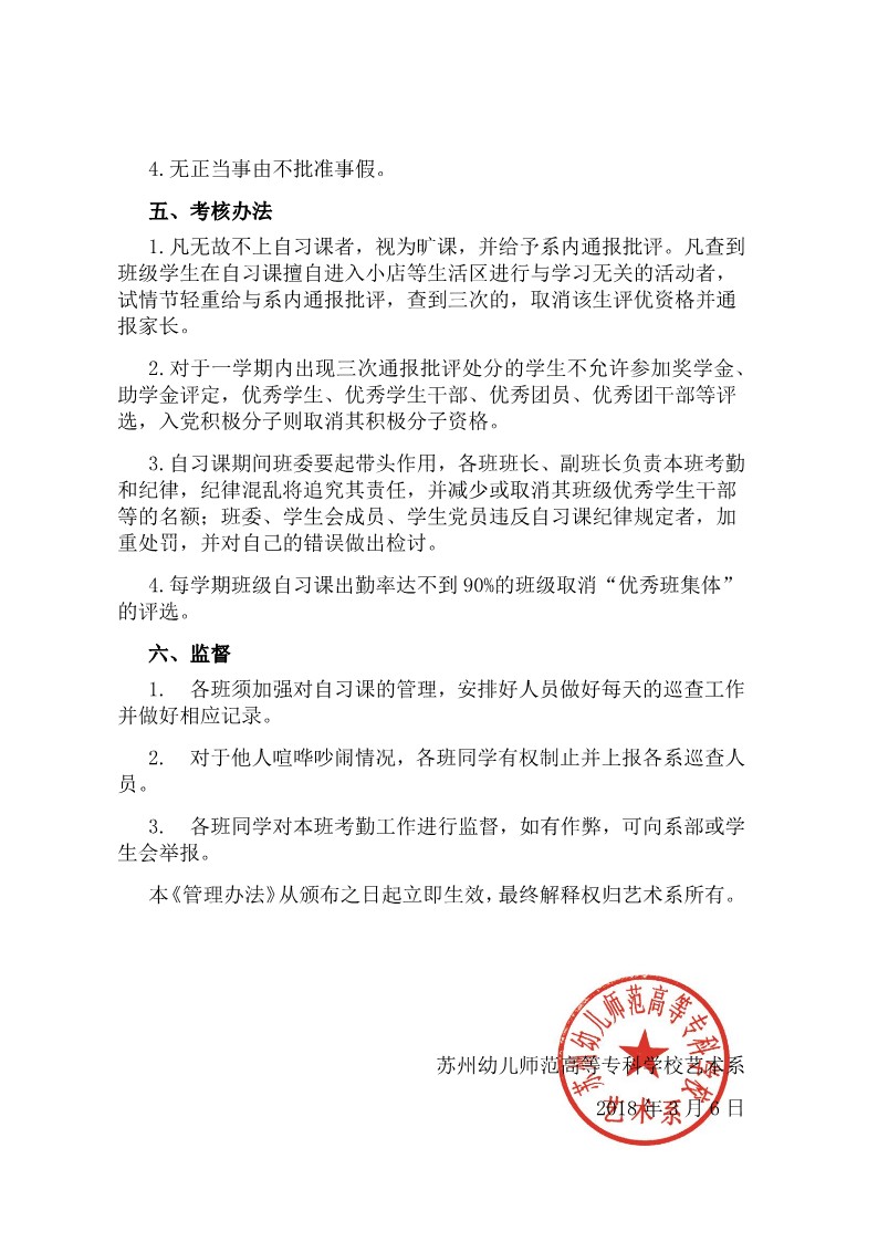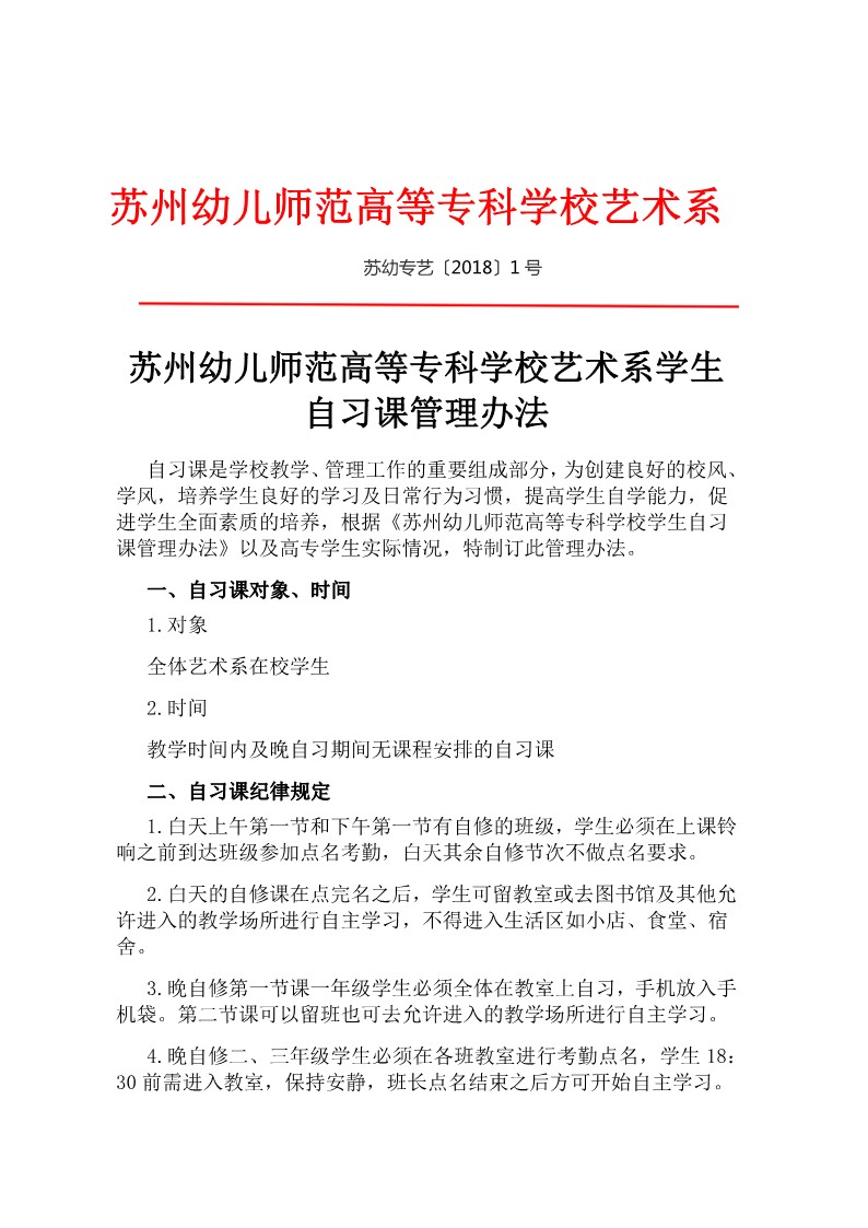 苏幼专艺【2018】1号关于买球赛的app官网艺术系学生自习课管理办法