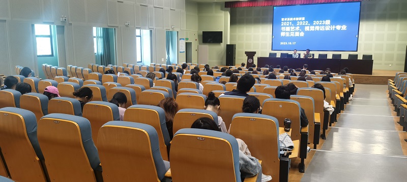 2023年10月17日中午,艺术系2023、2022、2021级书画艺术、视觉传达设计专业全体学生于报告厅举行新学期师生见面会活动。