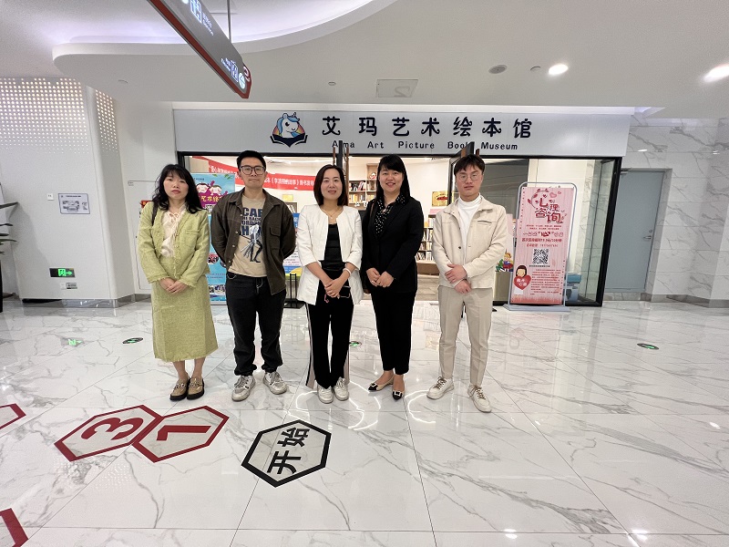 在公司旗下艾玛艺术绘本馆门店,公司创始人张颖向艺术系教师详细讲解公司的业务范围,对绘本教育的市场前景、公司的教学模式、招聘人员的薪资待遇等内容进行介绍。高鑫主任就我系目前艺术专业的专业建设、课程设置、学生培养、就业去向等方面进行介绍。