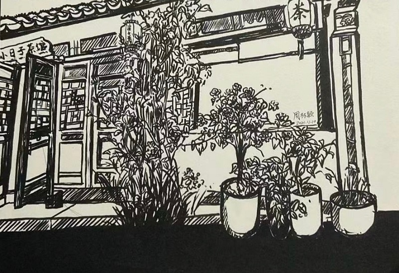 马蒂斯说:“色彩和线条是力量,而在这里的游戏里,在画的平衡里,隐蔽着创作的秘密。” 这次写生是我学习设计后的第一次体验,尤其是在速写方面对造型的研究更加透彻了,总之这次出去写生收获良多。不仅增加了自己的绘画能力,也提高了自己面对困难得毅力。平时大家都在忙毕设,能够借这样一个机会,相聚一下,谈谈话,切磋切磋,真是难得。去亲身感受、触摸一下那里的山山水水,那里的风土人情对我们美术专业的学生来说是一件难能可贵的事情。