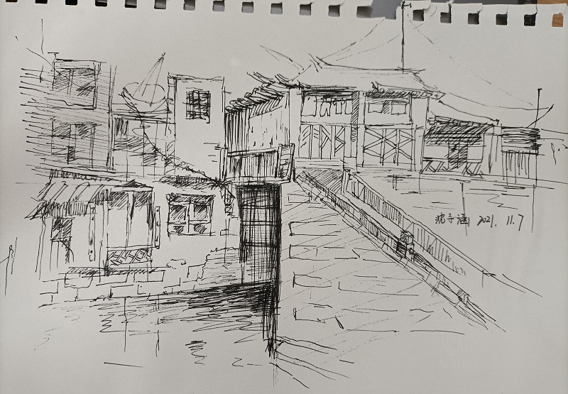 江南古镇总是以它独特的魅力吸引着络绎不绝的游客。古镇大大小小我也看了很多,感觉都大同小异,新修的房屋和邻街的商铺,小道上人潮涌动,吵吵闹闹,特别嘈杂,所以一般我对古镇都是避而远之。来到甪直,改变了我对古镇的一惯映像,斑驳的墙面和参天大树似乎都在述说着他的古老和悠久,建筑和小桥都保存的十分完好,没有经过刻意的雕琢。我心里窃喜来到真正的江南水乡,大爷坐在小凳上沐浴着冬日的暖阳,小猫慵懒的睡着大觉,一幅水月静好的画面,映入眼帘。我们一行人背着画夹,捕捉着街景,在这古朴的小镇,用我们的画笔描绘下这份美好。