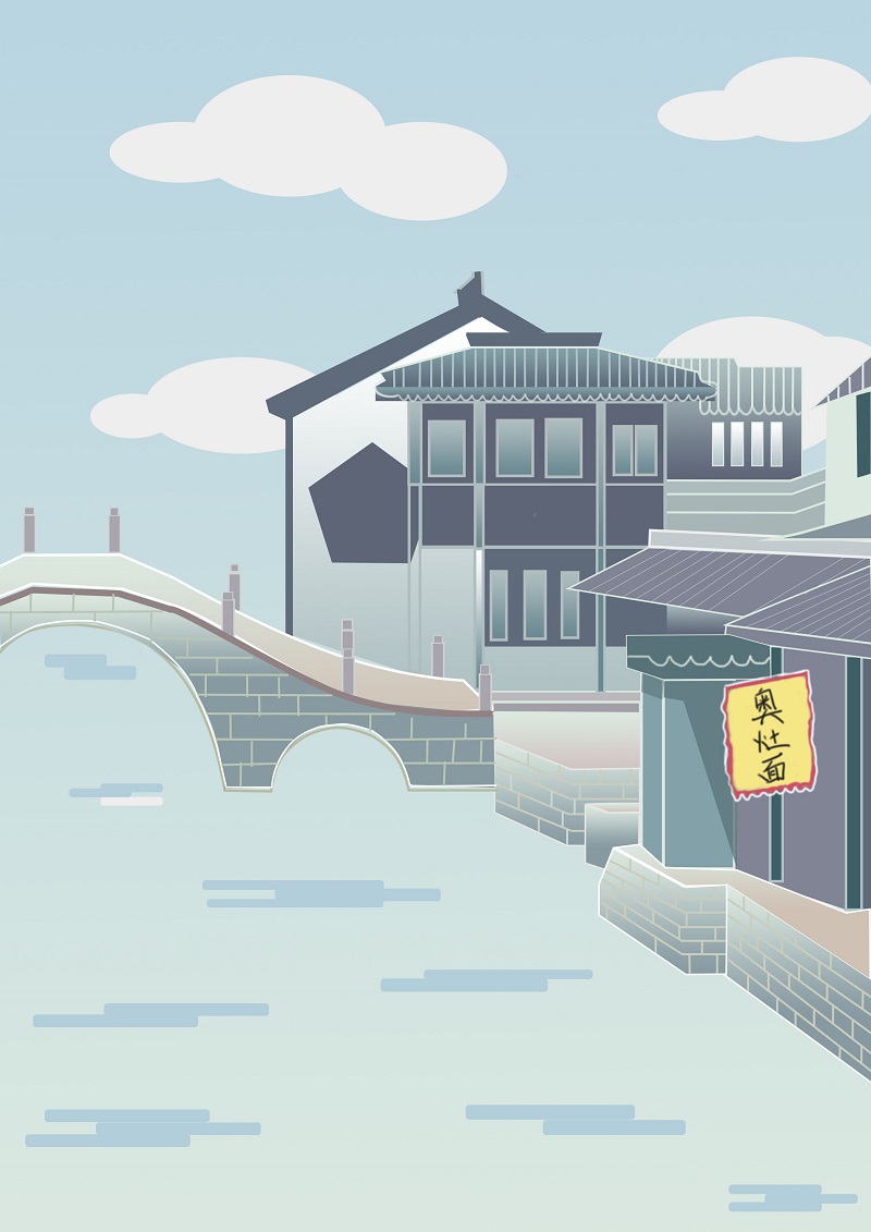 甪直古镇众多,还有叶圣陶笔下的万盛米行,新建的江南文化园,这些优美的景点令我流连忘返。如果时间充裕,坐船游览古镇,如痴如醉地感受“舟行碧波上,人在画中游”的意境,在船上品味一下甪直那悠悠的水、曲曲的河、弯弯的桥、窄窄的街、深深的巷、斑斑的墙、沉沉的瓦。这让我想到了吴冠中先生,每次去江南,必去甪直。他的画作《江南人家》。将墙体的拉长,色块的组合等方面都作了主观处理。寥寥几笔,春风十里。对于我来说,甪直古镇有她独有的宁静淡美。有一种抒情诗般感染力。