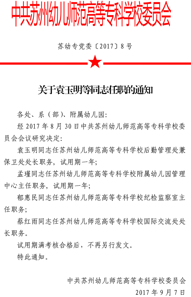 关于袁玉明等同志任职的通知