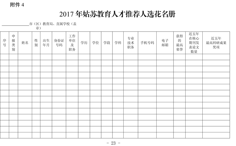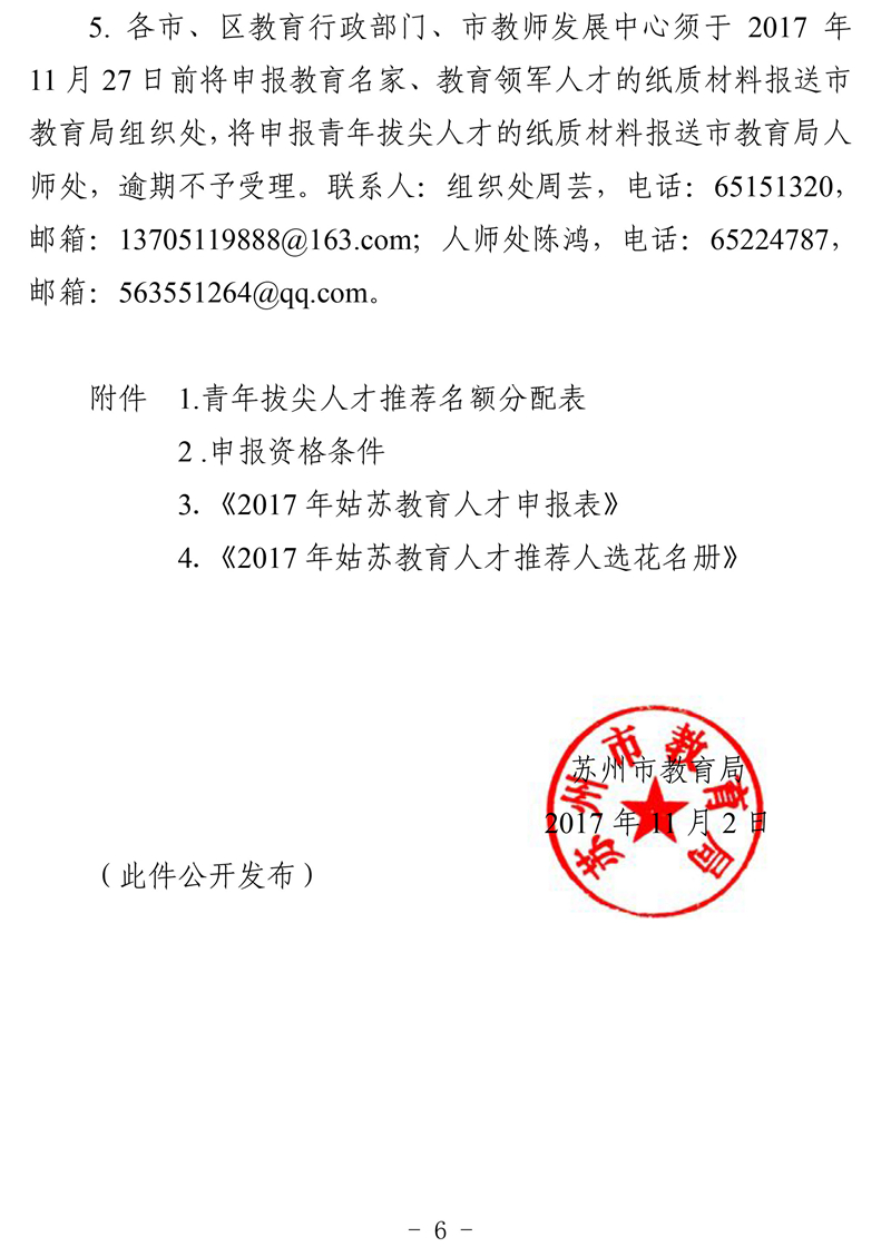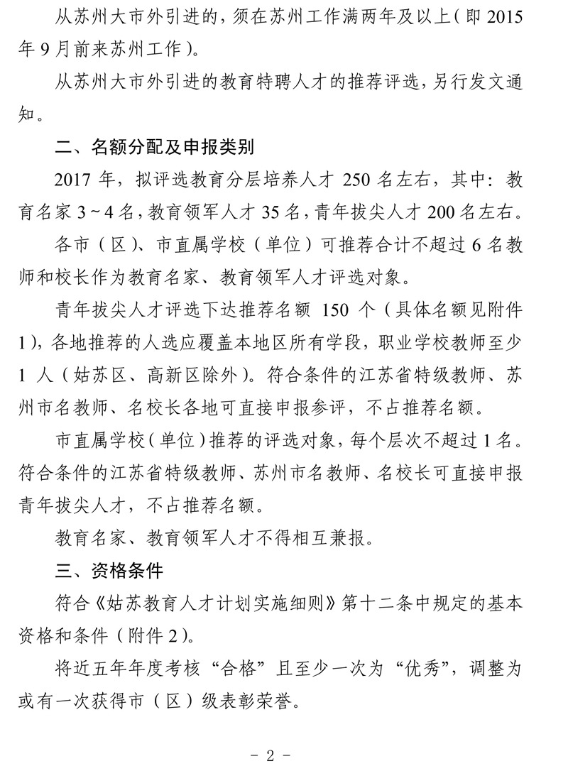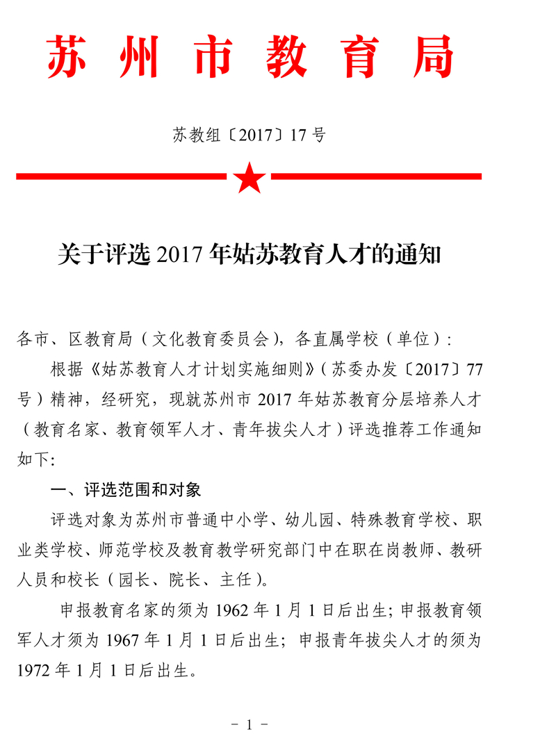 关于评选2017年姑苏教育人才的通知
