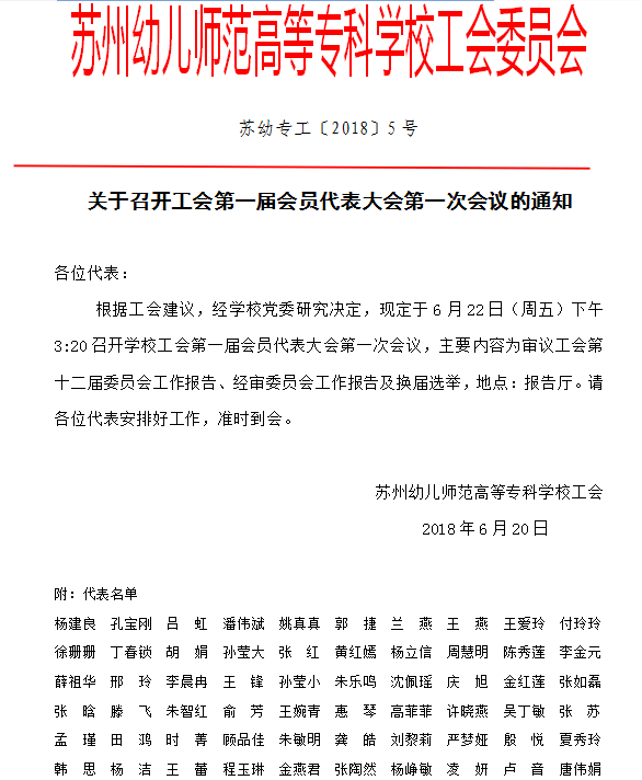 关于召开工会第一届会员代表大会第一次会议的通知