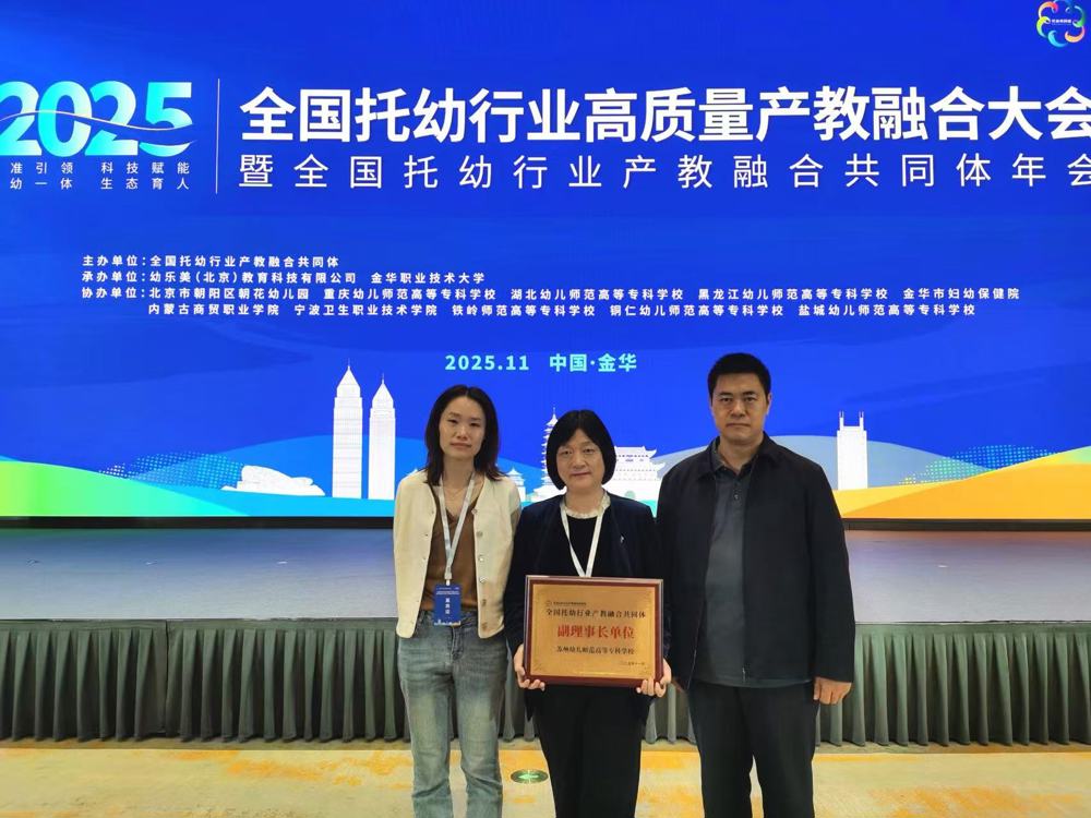 11月11日-12日,全国托幼行业高质量产教融合大会暨全国托幼行业产教融合共同体年会在浙江金华隆重召开。金华职业技术大学校长梁克东,教育部职业院校教育类专业教学指导委员会主任委员刘兰明,全国托幼行业产教融合共同体理事长陈洪秋等领导嘉宾出席开幕式。我校党委副书记、校长殷海芳,学前教育二系张晗主任、张斐老师代表学校出席会议。