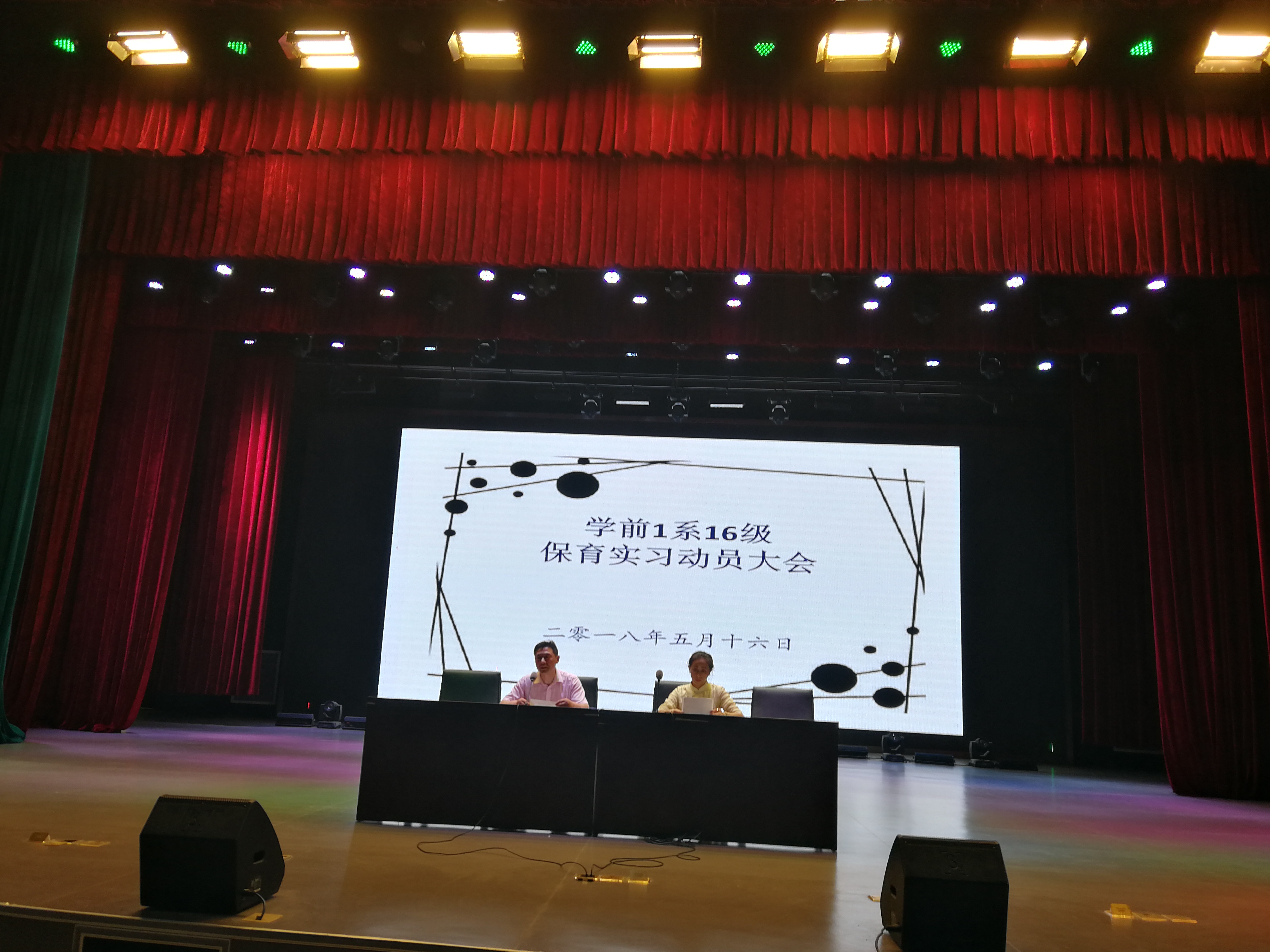 2018年5月16日下午,我系在演出厅举行了2016级保育实习动员大会。会议由薛祖华老师主持,系主任滕飞教授、专业课教师、16级各班班主任以及16级全体学生参加了动员会。