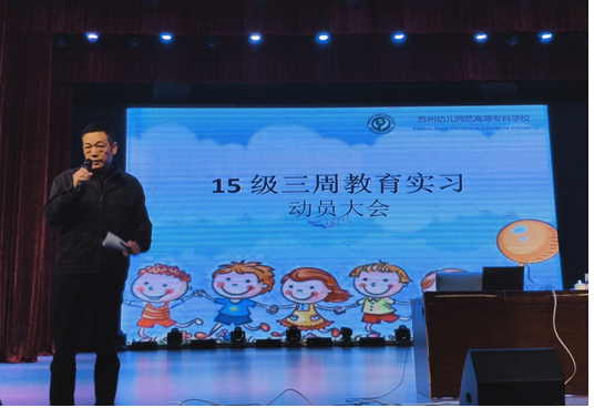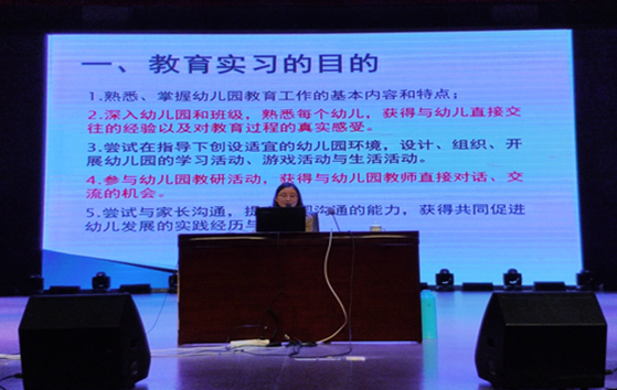 2018年11月7日下午15:30,我系于校演出厅召开了15级学生三周教育实习动员大会,系主任滕飞老师、副主任俞芳老师、园区翡翠幼儿园王晓华园长、15级全体学生及班主任出席本次活动。