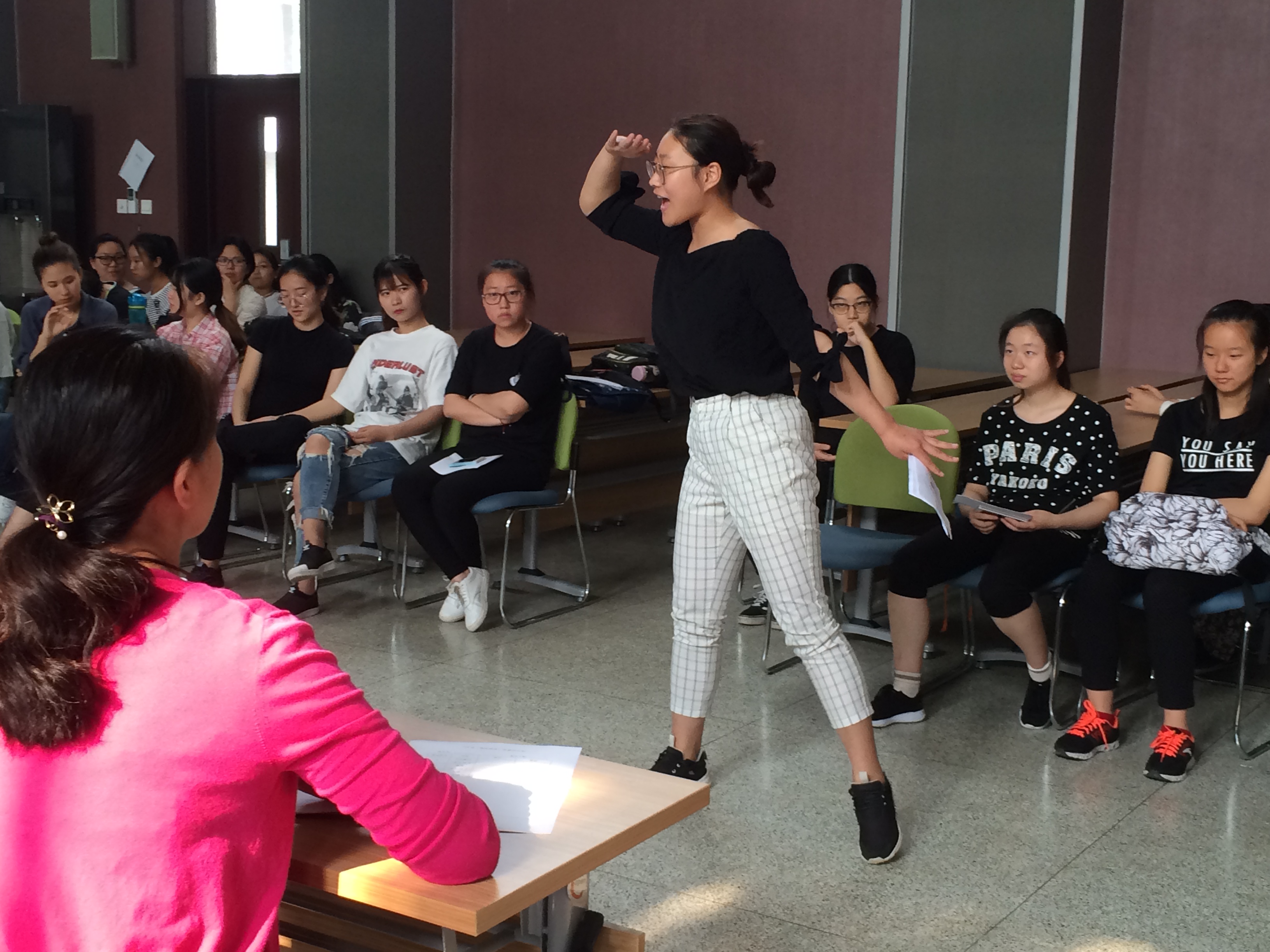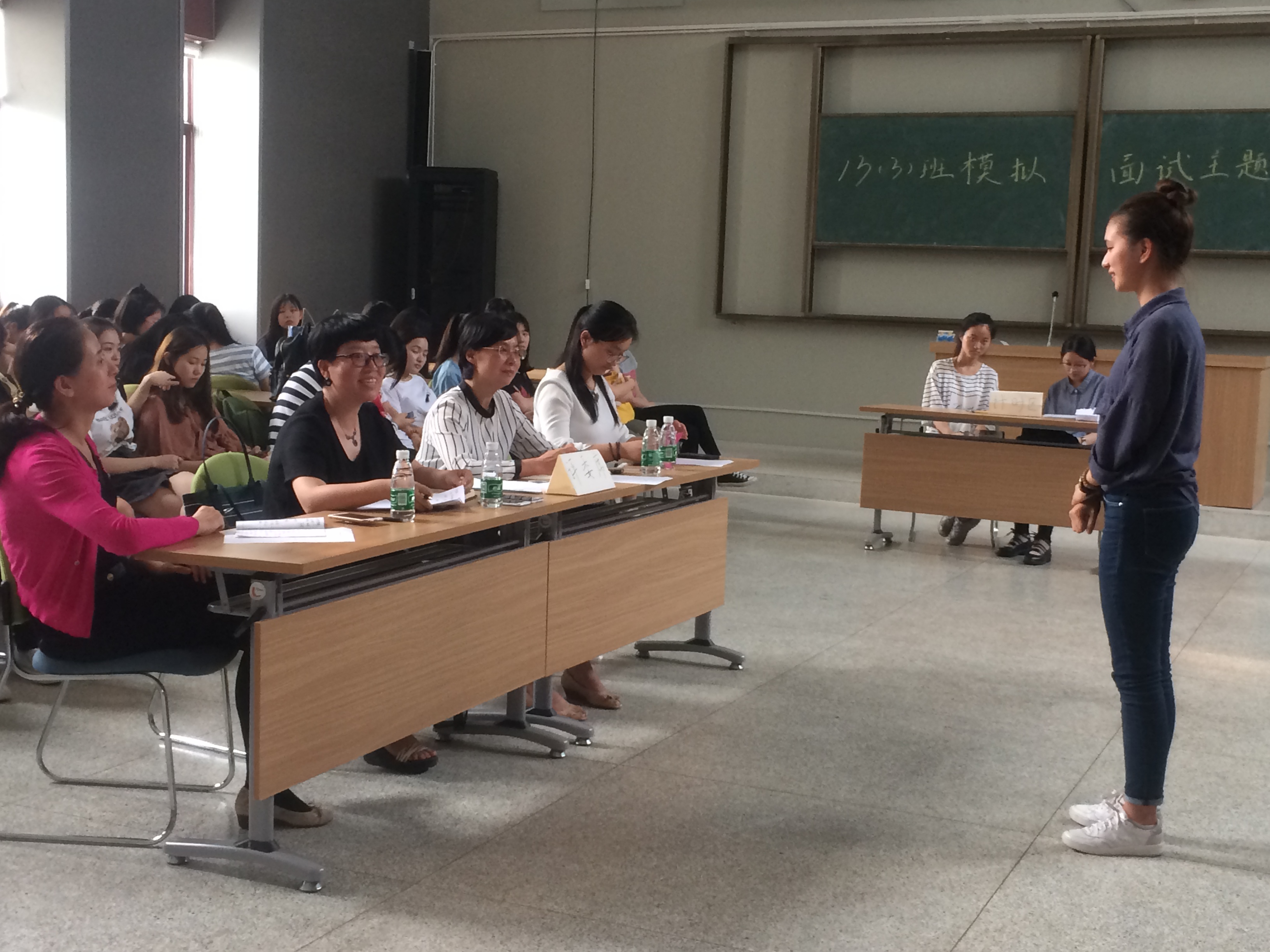 6月7日下午15:30,133班全体师生在我校合班教室C举行了一次别开生面的主题班会——模拟面试。近几年专门负责面试、招聘辅导工作的新区惠丰幼儿园范园长、曾任幼儿园园长的顾旅明老师、专业课教师贾莎莎老师和兰燕老师担任本次面试活动的评委,153班与159班的部分同学观摩了本次班会活动。