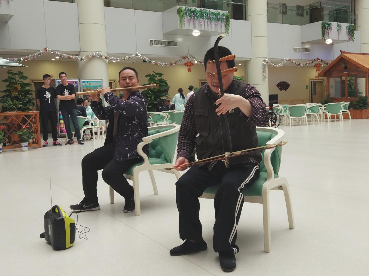 首先给老人们带来了健美操《踩踩踩》,充满青春活力的健美操赢得了老人们及护工阿姨们的阵阵掌声。接着我校的李士江老师给老人们带来了一首笛子独奏《姑苏行》,仿佛绘出了古城苏州的秀丽风光和人们游览时的愉悦心情。旋律优美亲切,感染人心。紧接着,李老师又献上了萧独奏《枉凝眉》,抒情柔美的声音,同样引人入胜。