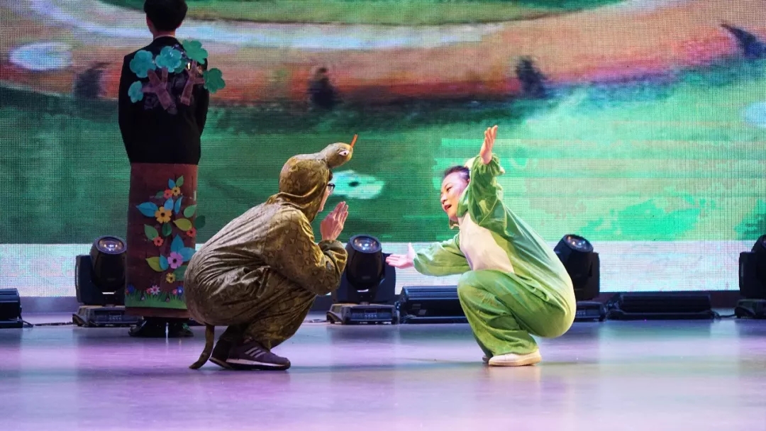 在整场演出中,148班的同学们配合默契,演绎出了各式各样的精彩表演,使台下的观众沉浸其中。儿童剧《请给青蛙一个吻》生动活泼,古筝《霓裳羽衣,古韵半夏》优雅古典,群舞《丽人行韵》婀娜多姿,独唱《少年锦时》娓娓动听,独舞《济公》惟妙惟肖,四手联弹《土耳其进行曲》动听传神,街舞《我的新衣》《go go》活力整齐,小品《聚会》妙趣横生,钢琴独奏《四月是你的谎言OP——若能绽放光芒》婉转动人。表演期间还穿插了148班各种引人入笑的小视频,引得一阵阵笑声。最后,来自148班全体的大合唱《明天会更好》将全场的气氛推向了高潮,演出厅内掌声雷动。