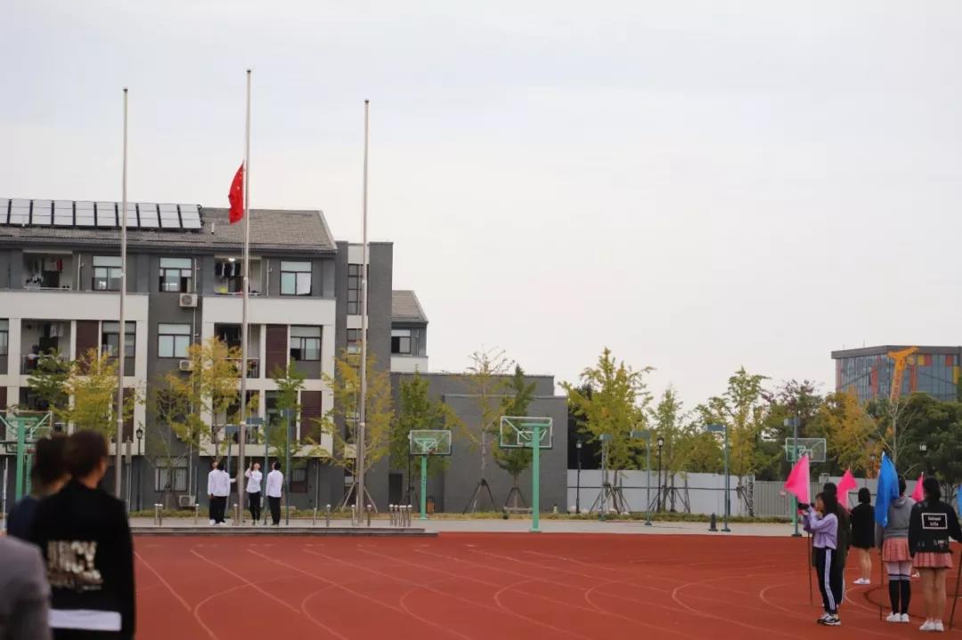 欢乐过后,全体师生便迎来了庄严的升旗仪式。五星红旗在护旗手的振臂一挥下徐徐上升,激昂的国歌随之响起,同学们嘹亮的歌声响彻整个操场,同学们注视着那鲜红的旗帜,表达了对祖国的无限热爱。