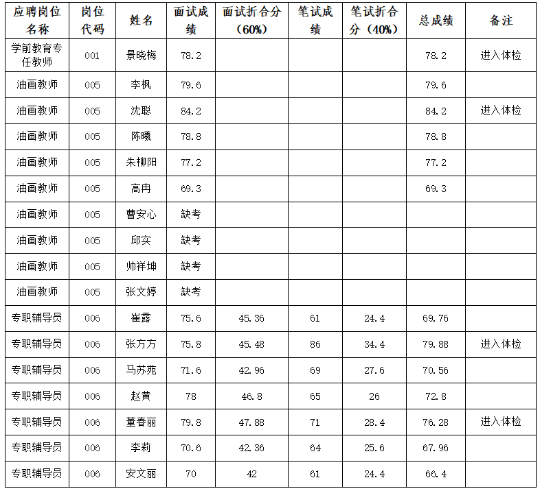 2022年学校公开招聘教师及专职辅导员面试及总成绩公示