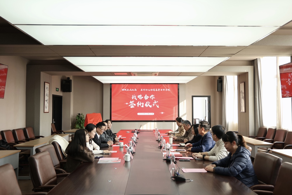 为进一步深化校地交流与合作,促进校企、校地良性互动,实现资源共享、互利共赢,12月11日下午,我校与相城区人力资源和社会保障局隆重举行战略合作签约仪式。校党委副书记、校长殷海芳,相城区人社局局长张钦祺,相城区科技镇长团成员顾涵,中亿丰控股集团有限公司副总经理、苏州市人事经理协会会长王丽萍,吴通控股集团人事经理、相城区人事经理协会会长李阳,我校各系主要负责人共同参加。签约仪式由校党委委员、副校长陶华山主持。