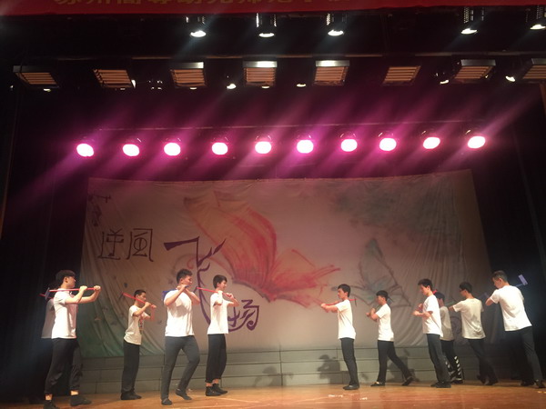 生活总是多姿多彩的,118班以舞蹈《生活五重奏》向大家展示了男生心里的酸甜苦辣,赢得大家阵阵喝彩。