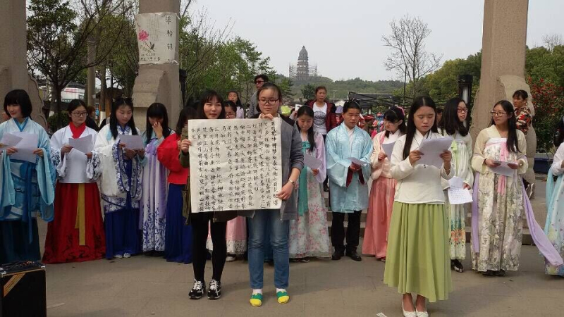 在传统佳节式微的今天,为了弘扬传统节日文化,苏幼汉服社于2015年3月29日下午1:30在虎丘风景区举办了花朝节活动。此次活动邀请了苏大、苏职大、三中等学校汉服社同袍共同参与,在活动中相互交流传统文化知识。
