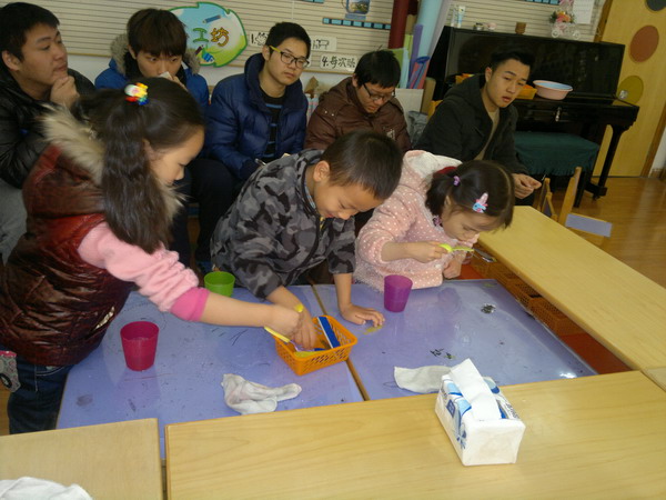 2010级免费男幼师生顶岗实习走访工作第二站——南京 时间:2014-12-04 00:00:00 浏览:次 分享到: 12月2 日上午,我校教师吴敏、顾旅明、兰燕、李小和四人一行前往南京走访2010级免费男幼师生顶岗实习工作。在鼓楼实验幼儿园,我校教师、南京各实习生所在幼儿园园长及实习生共同观摩了实习生汇报课并开展了座谈会。汇报课完毕,各园长进行了及时的点评,点评实在,且富有指导性。座谈会上,幼儿园园长对我校男幼师生在实习期间的表现给予了充分肯定,对免费男幼师生培养提出了意见和建议,这些意见和建议有利于我校进一步思考、完善免费男幼师生的培养。 打印正文 关闭本页