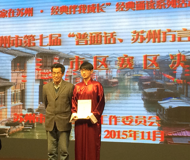 11月21日,我校朱君谊、王阅、陆宇舟、刘天雷四位同学在嵇红英老师和张涵韵老师的带领下,在市教师发展中心参加苏州市第七届“普通话、苏州话、英语口语”比赛,获得团体一等奖和个人一等奖的好成绩。