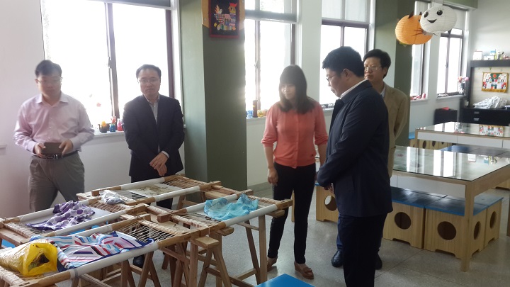 淮阴师院赵宜江副院长一行来校考察交流 时间:2016-05-23 15:00:07 来源:本站原创 作者:校办 浏览:次 分享到: 2016年5月16日上午,淮阴师院赵宜江副院长一行就实训平台建设这一内容来我校考察交流。我校吕虹书记、培训处丁春锁处长、杨俐副处长做了经验交流,并陪同赵宜江副院长一行参观了我校的实训室。 打印正文 关闭本页