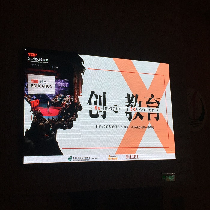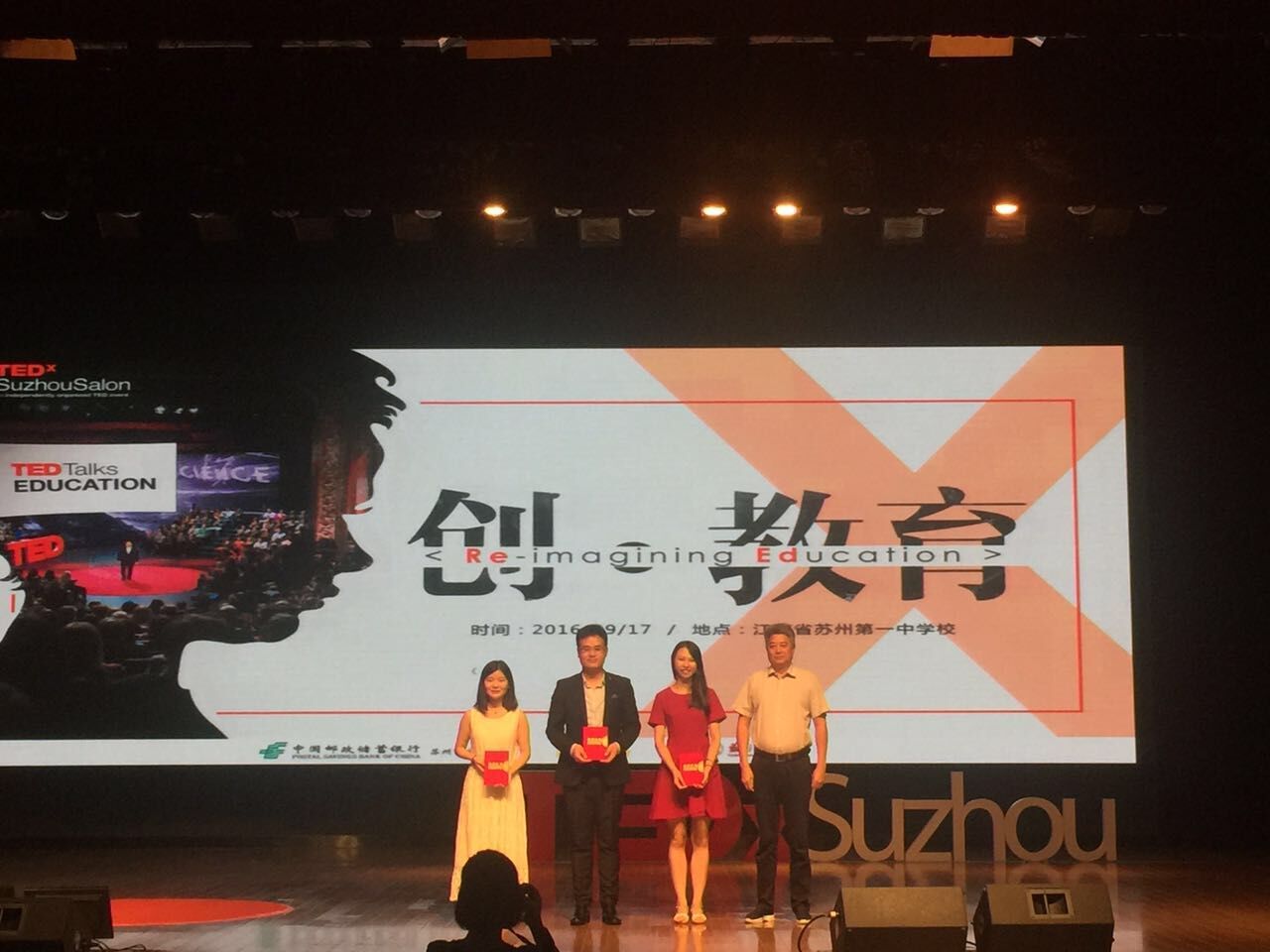 2016年9月17日下午,苏州市教育局联合TedxSuzhou,在江苏省苏州第一中学,以“创•教育”为主题,举办了全国首个教育沙龙。我校潘伟斌老师作为演讲嘉宾之一,与SKEMA商学院苏州校区校长达保罗、《用汉字讲文化》课程创办人钱恒廉、互联网教育先行者与旁观者魏忠等其他5位演讲人,成功开展了一次Ted式演讲。
