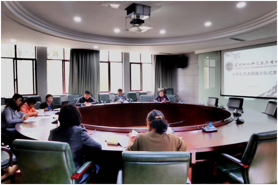 11月14日中午,我校大学生艺术团成立筹备会在校第一会议室召开,校长杨建良、学工处处长肖蕾及艺术团各分团负责老师出席了会议。校团委周慧明书记主持了会议。