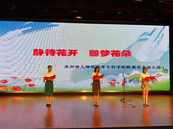 2018年5月29日,朗诵比赛在苏州旅游财经高等职业技术学校明礼堂隆重举行,来自教育工会的三十一个单位参加了此次比赛。我校附属花朵幼儿园龚皓、马鸣悦、杨湘怡带着花朵幼儿园老师的原创诗歌《静待花开,圆梦花朵——让每一朵花蕾都美丽绽放》参加了角逐。在她们声情并茂、发自肺腑的诵读中,大家感受到了作为一名幼教工作者的心声和感悟,讴歌了主旋律,弘扬了正能量。真挚感人、富有激情的诵读博得了评委认可,获得了二等奖的好成绩!