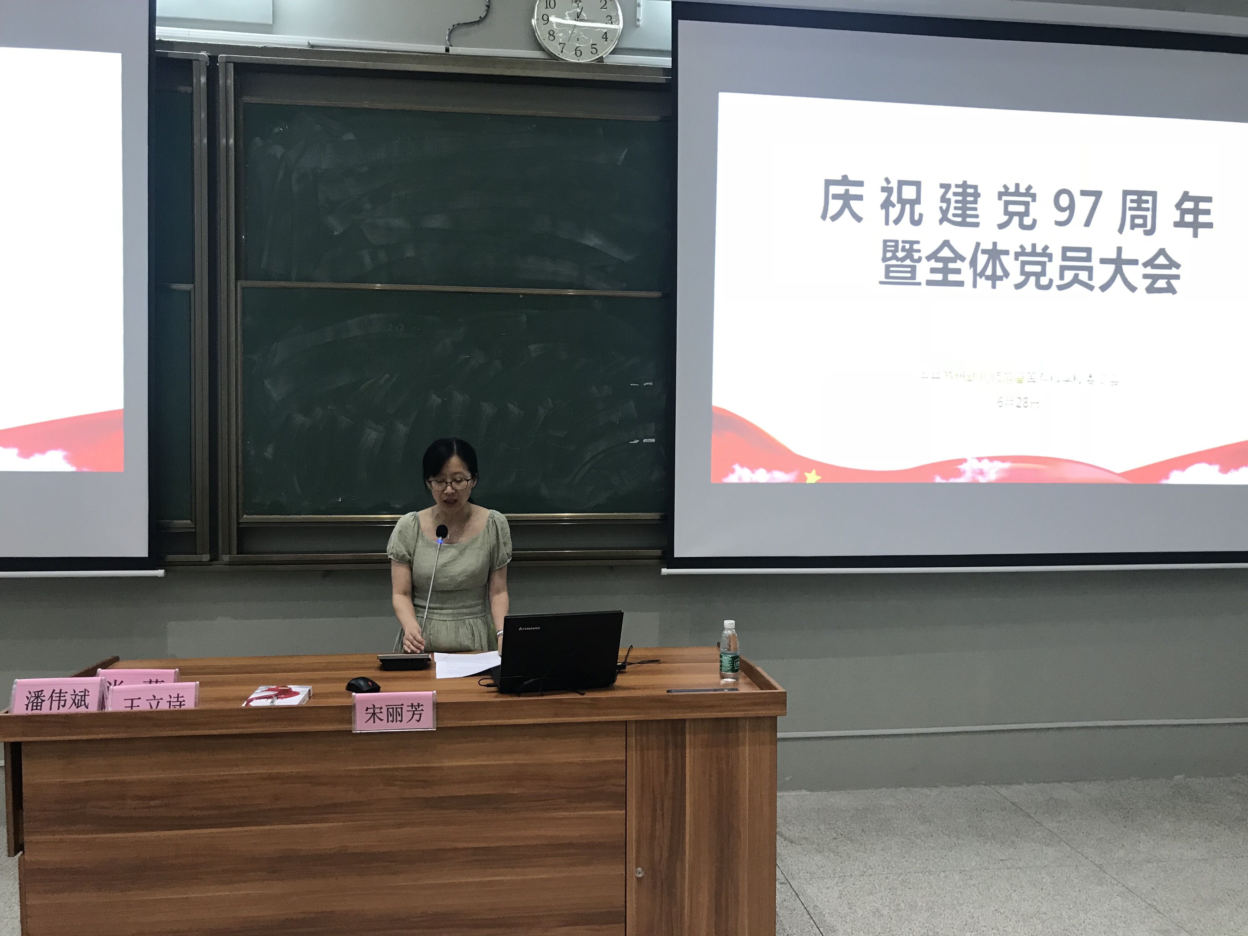 6月28日下午13:30,在校合班教室D,学校举行了庆祝建党97周年暨全体党员大会,此次大会由组织人事处副处长潘伟斌主持。