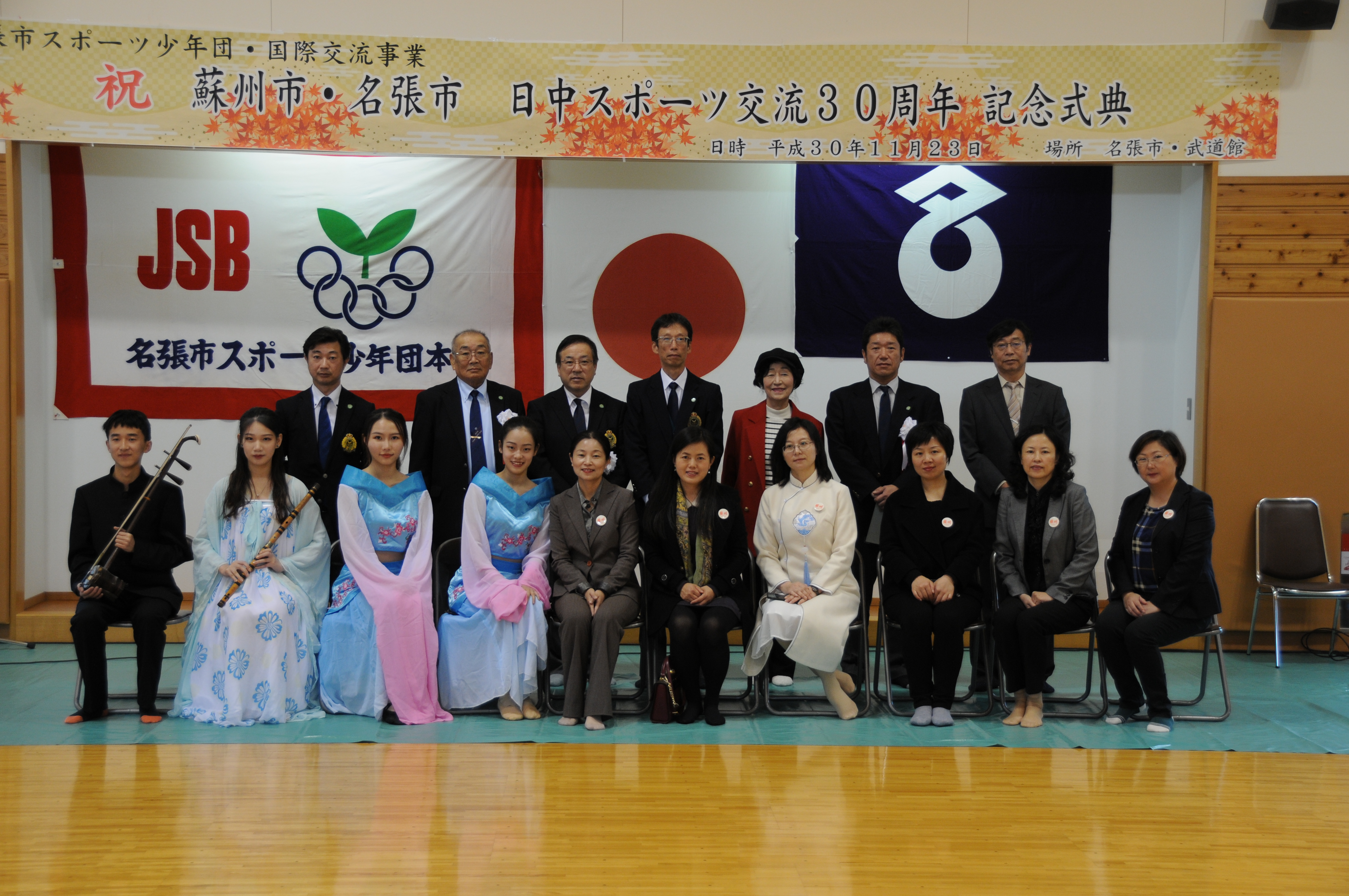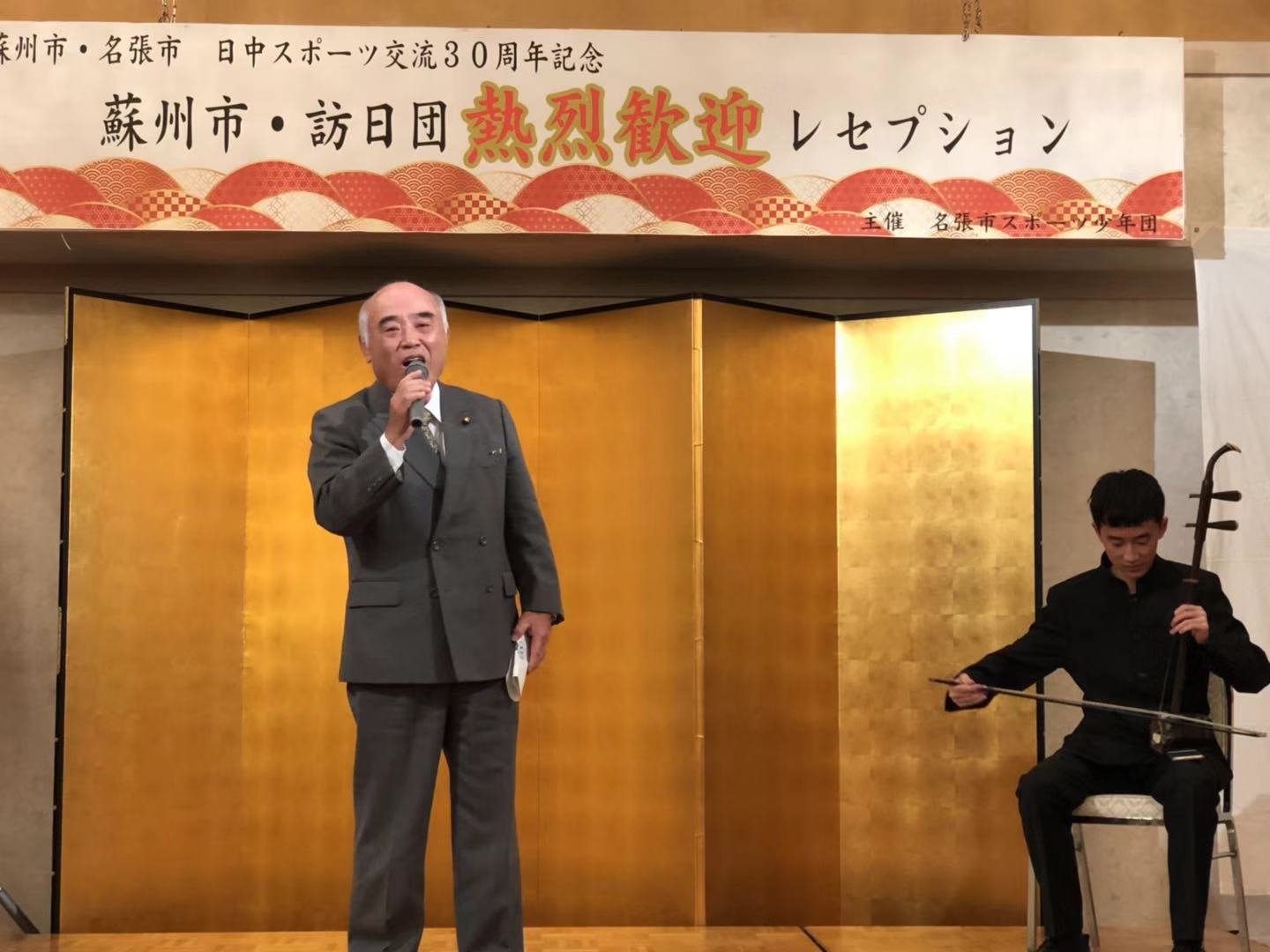 代表团一行受到了名张市市长龟井先生以及所有部门人员的热烈欢迎,并在市政厅政府大楼参加了座谈会议。名张市长及教育部长上岛和久先生发言,对苏州代表团一行表示了热烈欢迎,各部门行政长官与苏州代表团进行了亲切的交谈,双方都肯定了名张市与苏州市的友好关系,并承诺会将继续深入双方的合作。之后代表团参加了苏州名张建立友好关系30周年的庆祝典礼。名张市幼儿们排着整齐的方阵入场,并分成几个部分打鼓、敲锣、弹琴,在幼儿自己的指挥下整齐地演奏着,幼儿们的音乐节奏能力与整齐划一的动作令代表团印象深刻。名张市市长致开幕词,名张市各级部门政要领导分别发言,苏州代表团团长也发表祝词祝贺两市建立友好关系30周年。庆典上名张市少年体育团表演了杂技,空手道。我校学生赵嘉雯表演了傣族舞 《 花儿》,张沁如表演了当代舞蹈《前行》,江哲钰笛子独奏《梅花三弄》,庞吉辰二胡独奏《空山鸟语》,都赢得了在场嘉宾和观众阵阵掌声。之后我校学生与当地少年开展了游戏,进行了友好互动并互赠礼物。 苏州代表团一行还在名张国际交流部长梶田和名张少年体育团领导们的带领下,参观了名张(忍者发源地)的皮影故事表演和当地最古老的神社,加深了对日本文化的理解,也进一步了解了名张的文化历史。