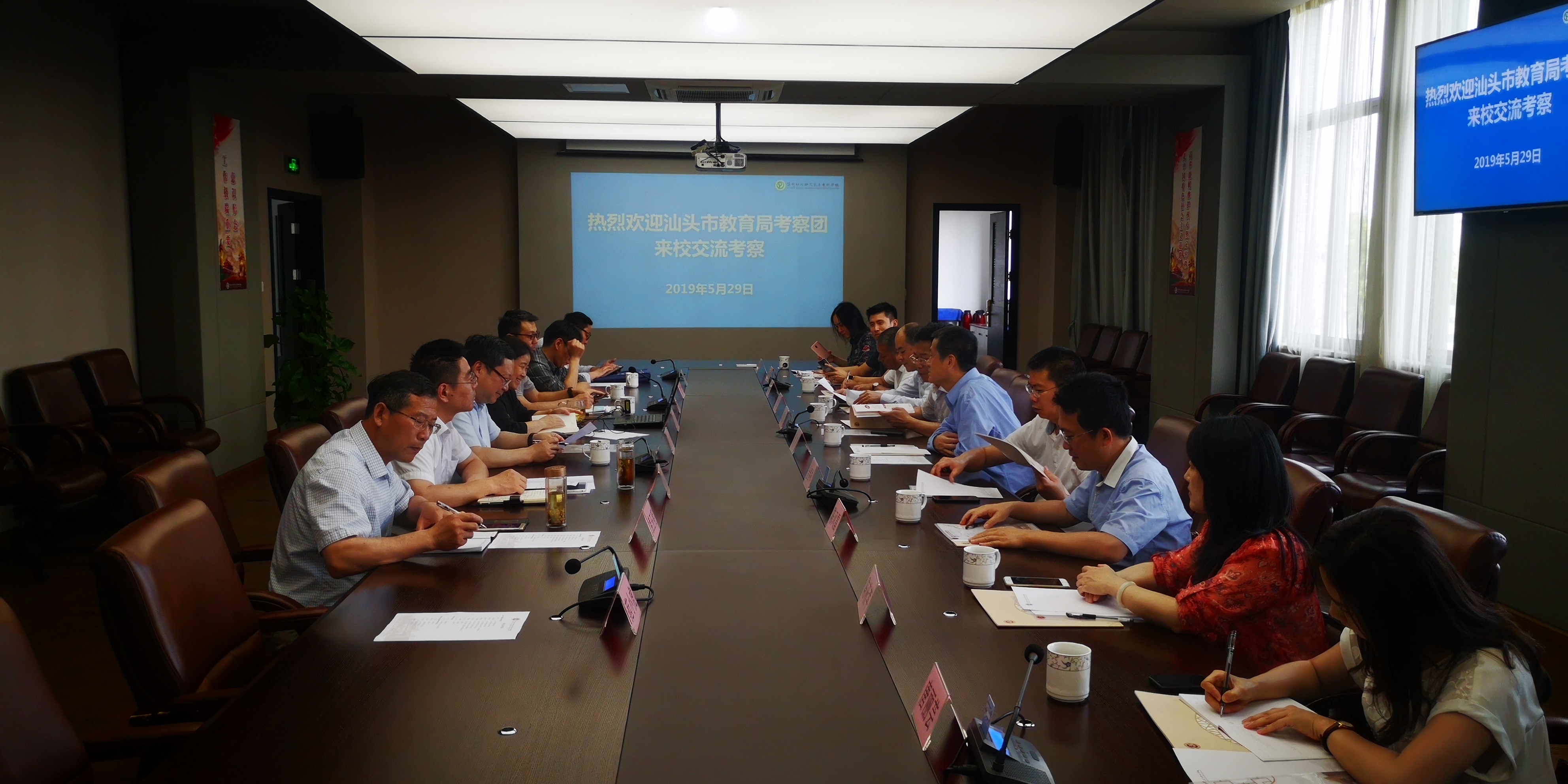 汕头市教育局考察团一行来校交流 时间:2019-05-29 14:45:01 来源:组织人事处 作者:组织人事处 浏览:次 分享到: 5月29日,由陈冬局长带队的汕头市教育局考察团来校考察交流,苏州市教育局调研员沈宇、发财处朱军陪同考察,我校吕虹副校长介绍了学校基本情况,并对学校建设规划的有关内容作了详细介绍。陈冬局长表示,苏州幼专新校建设规划理念新、有特色,校园布局合理,功能区域设置完善,很有启发借鉴意义。 打印正文 关闭本页