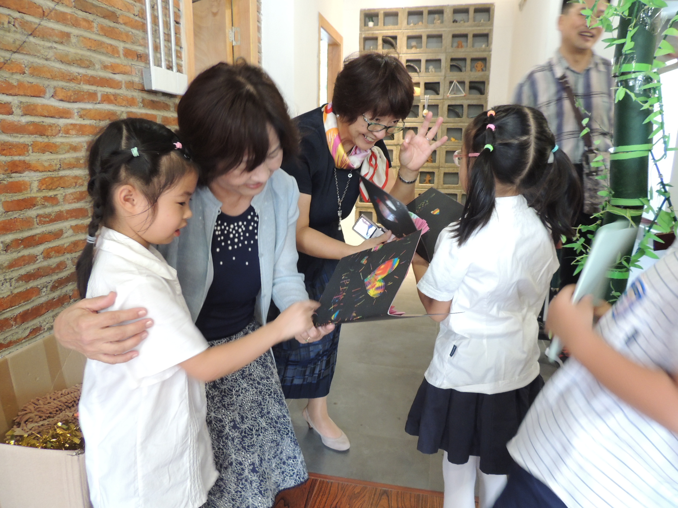 日方代表三人一行参观了花朵幼儿园的木工区,美术创意区,泥工区,果树林,建构区,体能区以及教育幼儿园的视听室,精工坊,科学发现室以及木工坊,儿童体检中心,儿童保健馆等,在这些创意满满而又知识丰富的教室里,三位幼儿园代表和小朋友亲切互动,还收到了小朋友亲手制作的DIY贺卡以及布艺饰品。教育幼儿园小朋友们为大家准备的节目《苏州风光真真好》构思新颖,表演精彩,获得了大家的喜爱。