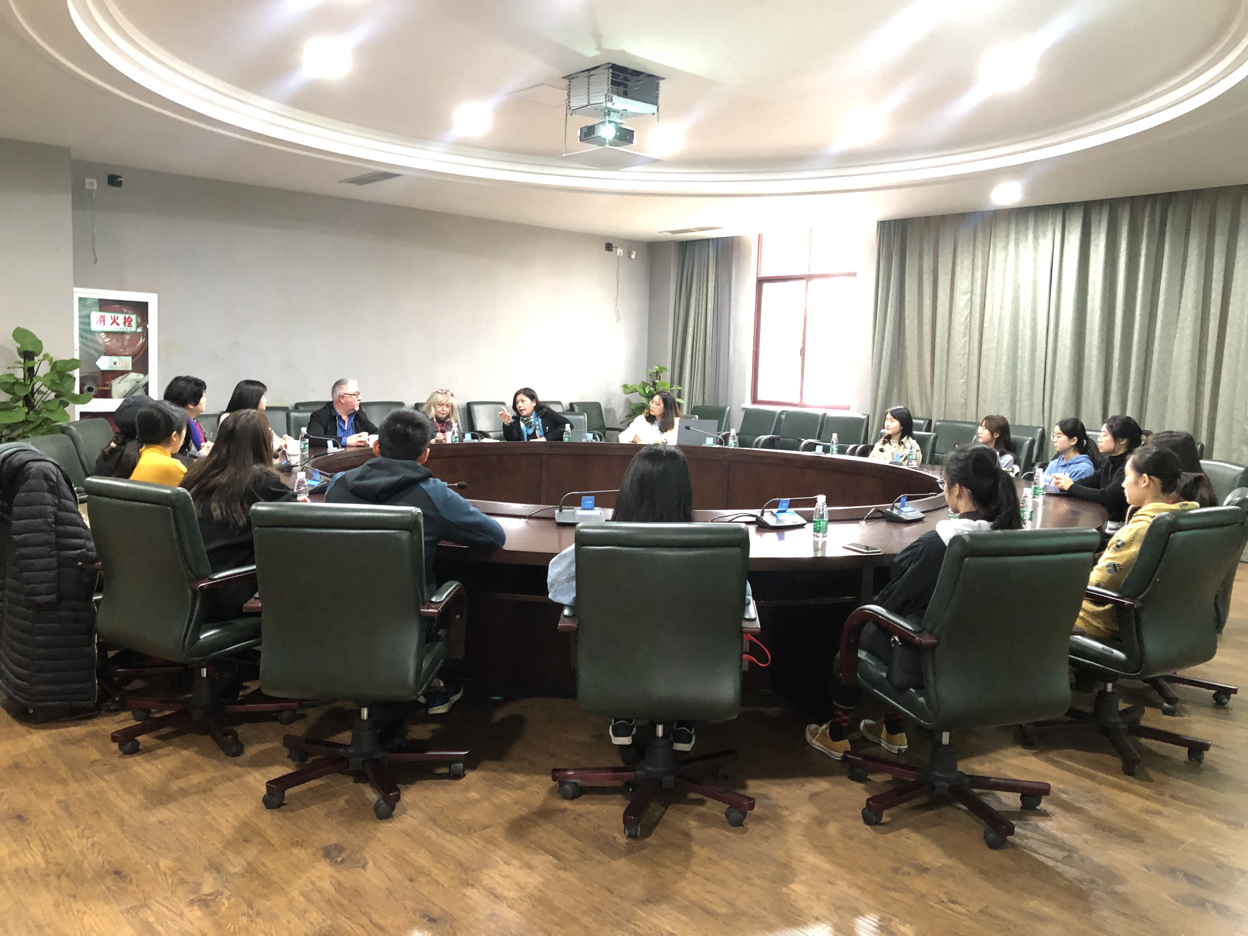会后,GBC客人还与我校部分学生代表进行了座谈。这些学生来自不同的年级和部门,分别就夏校项目、出国留学项目、双方之间其他形式的友好交流以及中外幼教行业的异同之处,如课程设置和教学法等方面,提出了疑惑。从同学们的提问中不难看出,大家对学前教育专业的国际理念和行业发展普遍有着浓厚的兴趣,希望能够通过国际交流拓宽视野、提升专业素养。Ms. Patricia Chorney就同学们的提问进行了耐心和详细的解答,同时对同学们问题的专业性,以及流利的英语表达了高度赞扬和认可。她希望在此基础上双方学校能够实现更高质量,更深层次的学术交流!