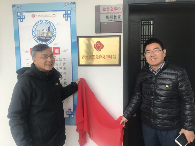 12月3日上午,我校我校离退休支部“苏州银发先锋党群驿站”揭牌成立,陶华山副校长、离退休支部书记汪乃铭共同为驿站揭牌。