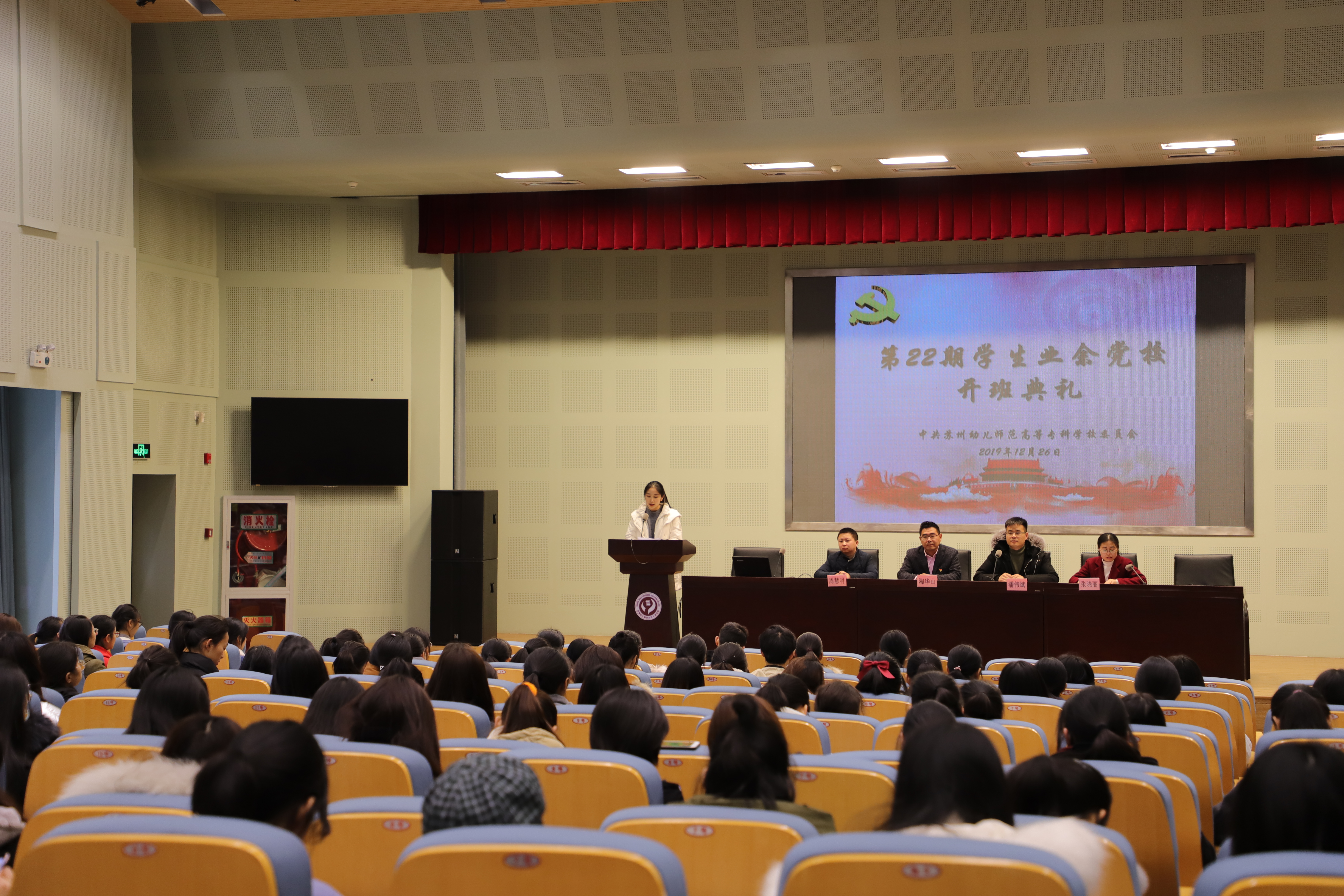12月26日中午12:15,我校在报告厅召开了中共买球赛的app官网委员会学生业余党校第22期培训班开班典礼。校党委委员、副校长陶华山、校团委副书记周慧明、组织人事处副处长潘伟斌、组织人事处张晓丽老师出席了本次活动。
