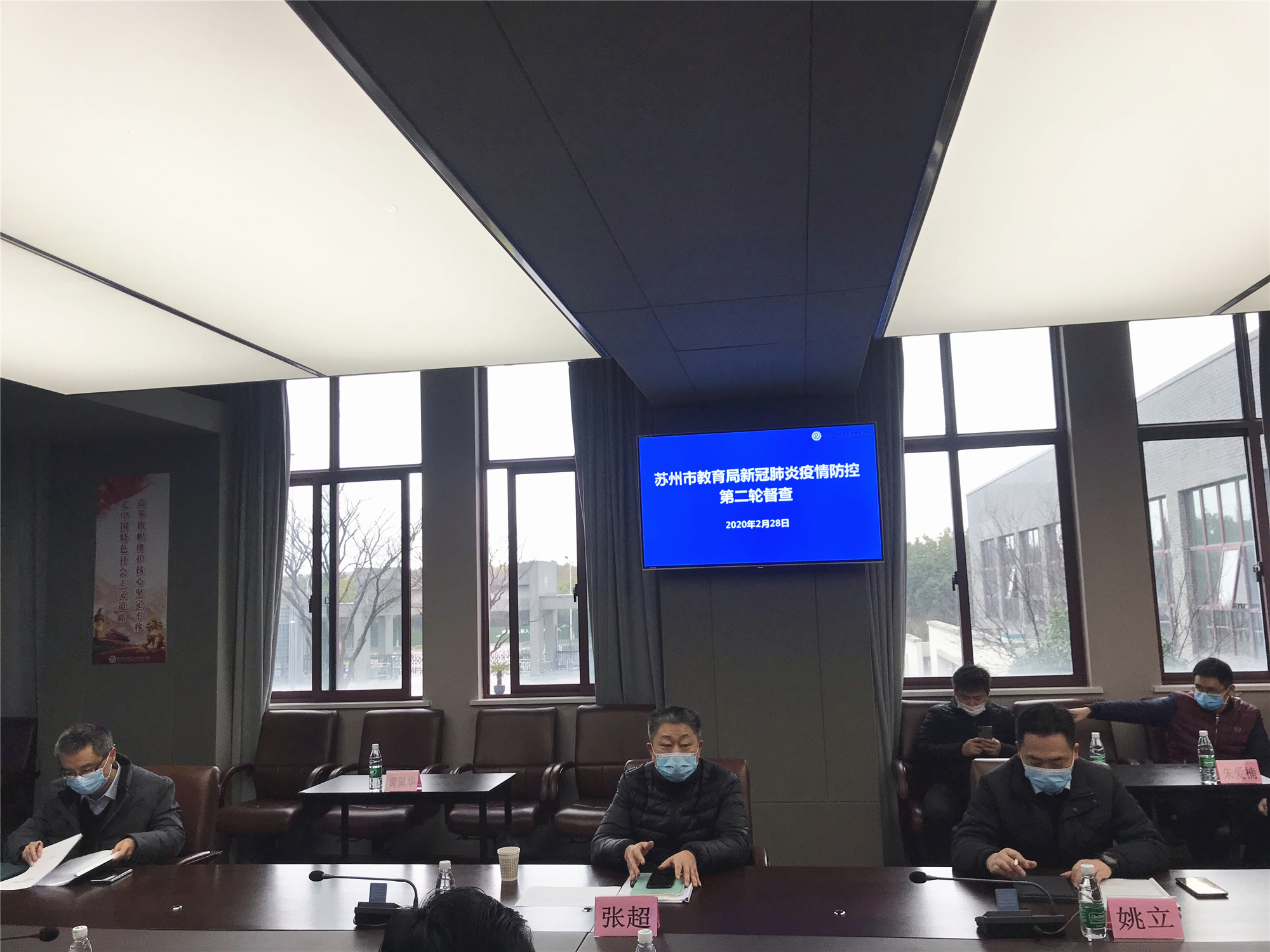2月28日上午,苏州市教育系统新冠肺炎疫情防控工作领导小组成员,高职教处张超处长、周蔚副处长,安稳处姚立处长一行三人来校进行第二轮疫情防控督查工作。我校杨建良校长、吕虹副校长、陶华山副校长,学校疫情防控工作领导小组主要成员、物业、保安、食堂负责人接受督查。