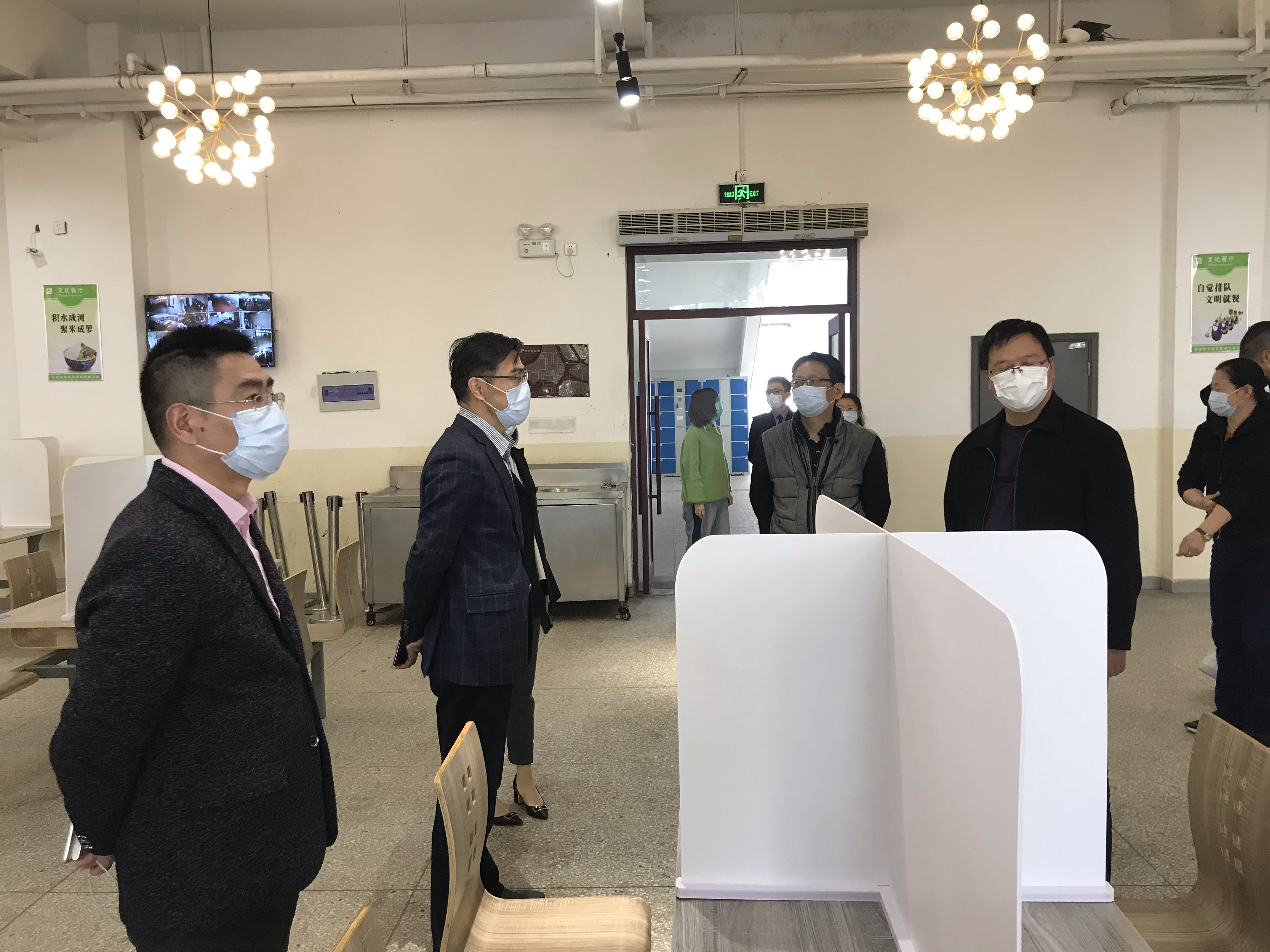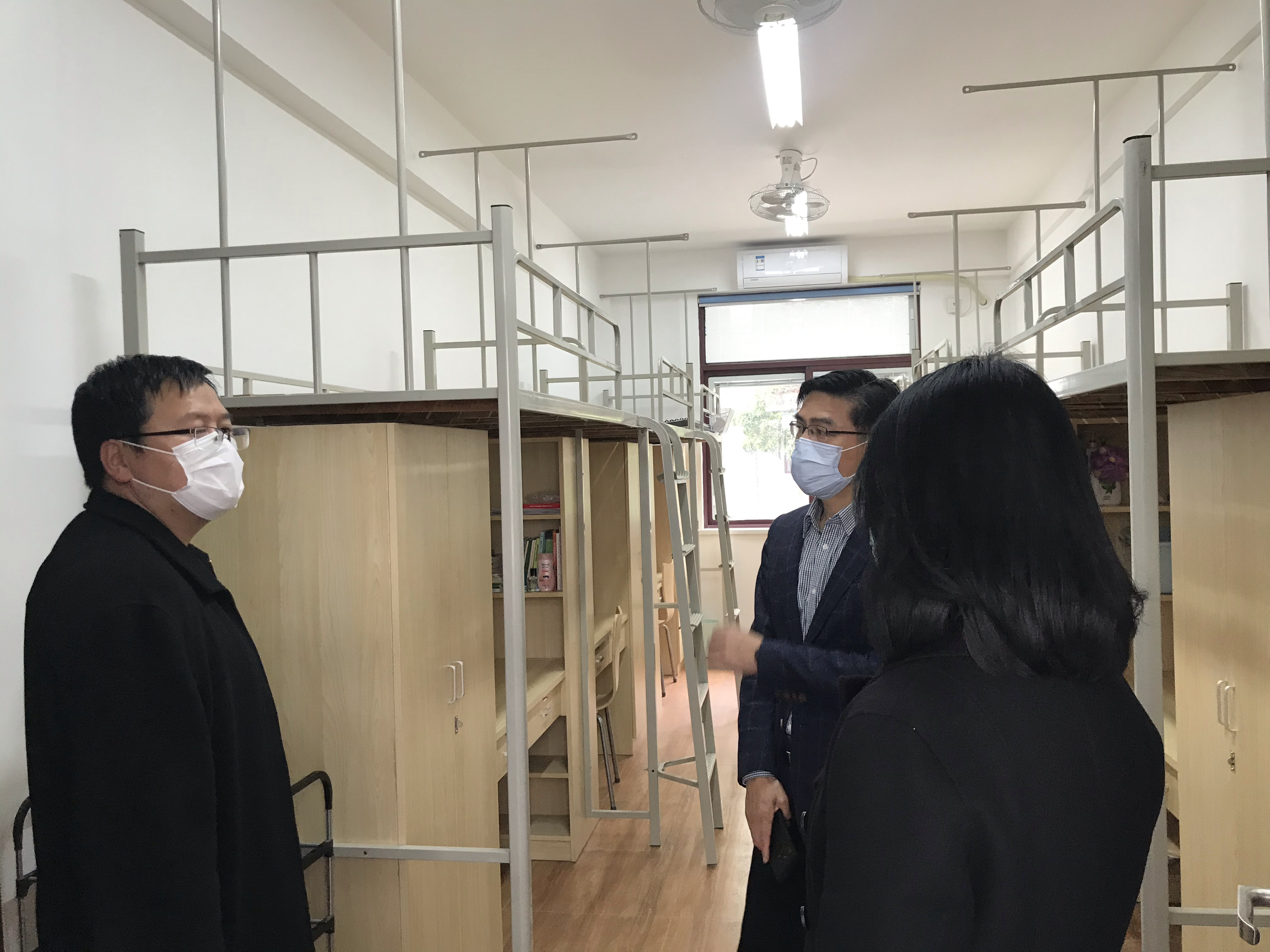张国镇副局长一行按照开学报到当天的流程,实地查看了学校的临时隔离点、物资储备室、食堂、宿舍、超市等场所,并就超市限流、转运车辆落实等内容提出了细致的整改要求。