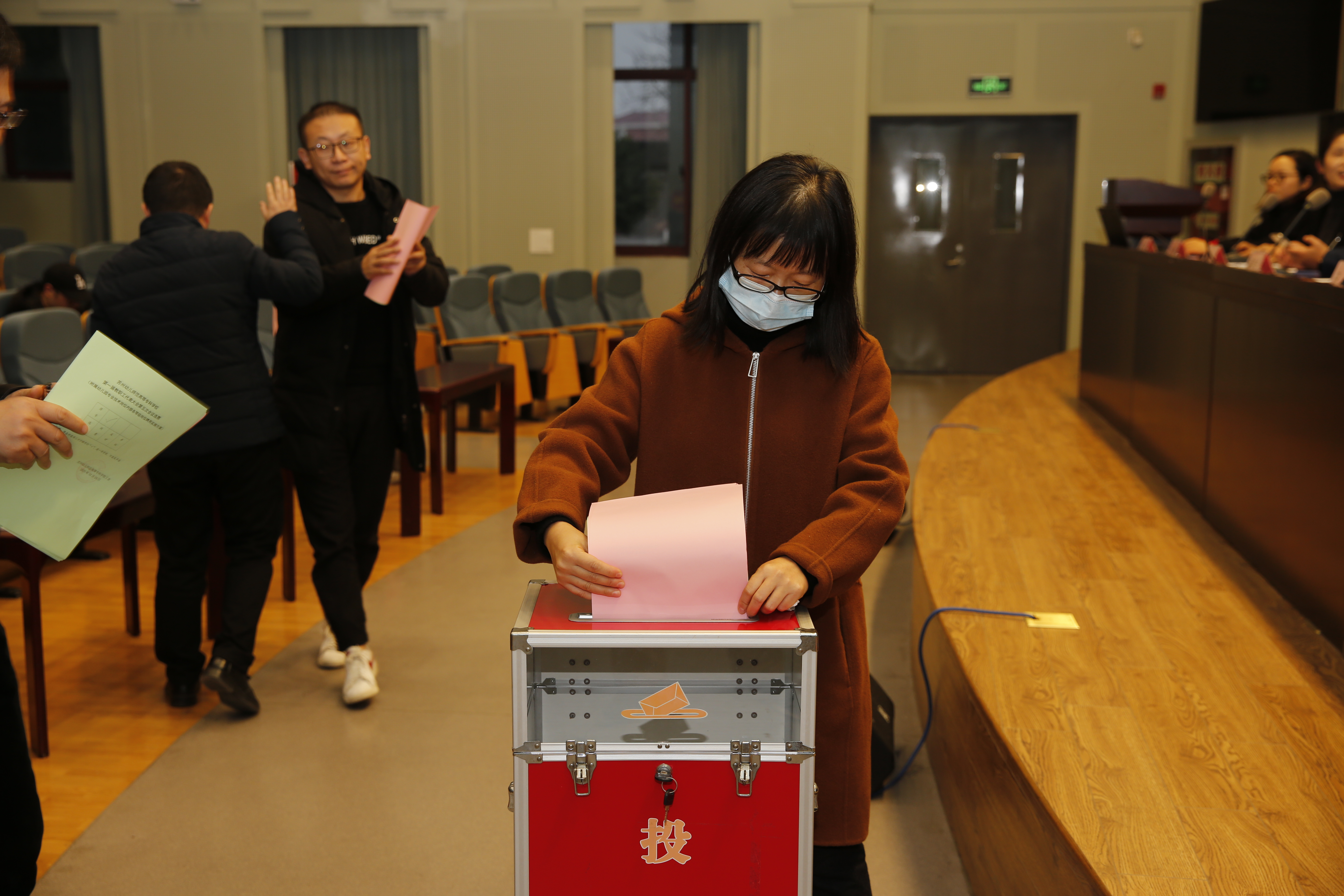 会议的议题是民主测评“教工之家”。根据议程,工会副主席王婉青作2020年度工会工作报告、工会财务工作报告,随后,全体代表就2020年度“教工之家”的建设工作进行无记名投票。经现场投票、现场唱票、现场统计,在2020年度“教工之家”测评中,我校工会获得会员代表100%的满意度,充分体现了我校工会服务学校中心大局、服务全体会员的导向和实绩。