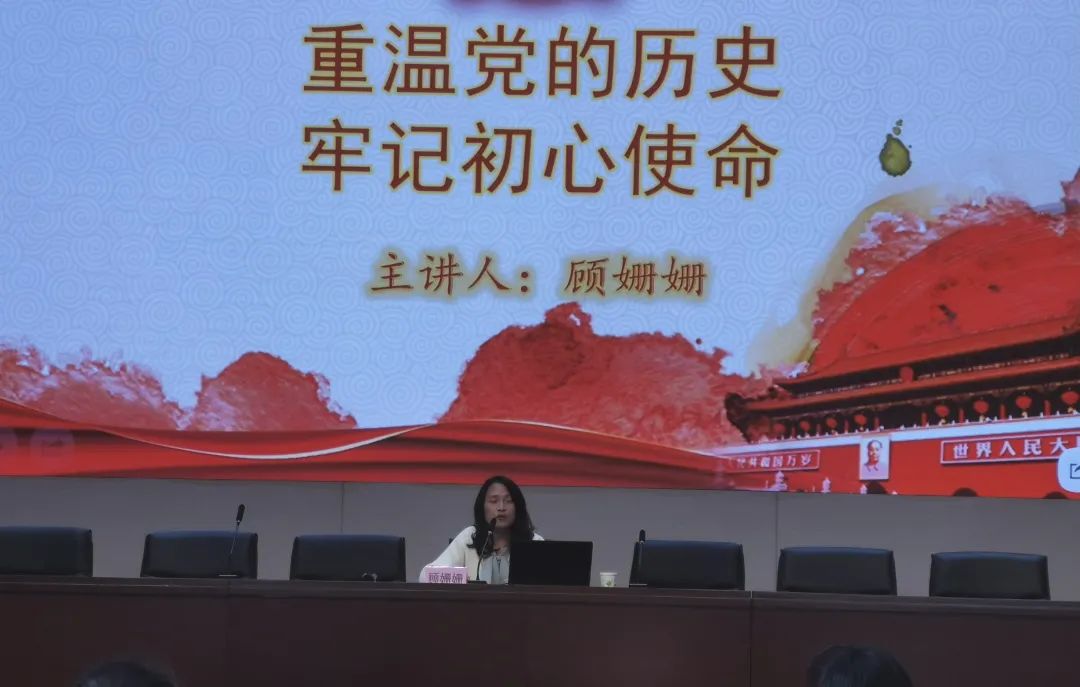 动员大会上,苏州科技大学顾姗姗副教授为全体党员作了《重温党的历史,牢记初心使命》的专题报告。