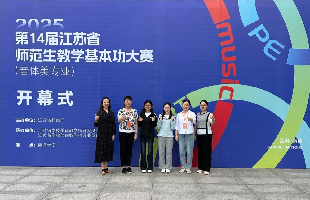 第14届江苏省师范生教学基本功大赛(音体美专业)于2025年10月17—19日在南通大学啬园校区举行,全省29所高校的选手齐聚南通大学,用专业与热情呈现了美育教育的盛宴。我校音乐系音乐教育2301班郝天慈、吴心缘同学参加该大赛小学音乐教育组的比赛,音乐系指导教师高鑫、席雯婷、曹静雯、王思思陪同选手至现场参赛。比赛成绩因需结合教师资格证笔试分数故暂未公布。