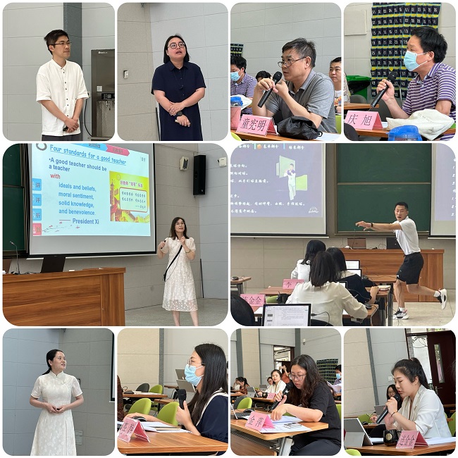 本次比赛自5月初启动,期间陆续收到来自各系部专业课与公共基础课共9名教师的参赛资料。现场比赛由微课教学展示(10分钟的现场无生教学)和评委提问组成。参赛教师自选教学设计中的某一教学节段的内容,有机融入课程思政元素,进行现场无生教学展示,以考察教师对思政元素的挖掘和融入技巧。教学展示结束后,评委从课程思政教学理念出发,重点围绕课堂教学目标、教学内容、实施过程与方法、课程评价、授课效果等方面进行提问。