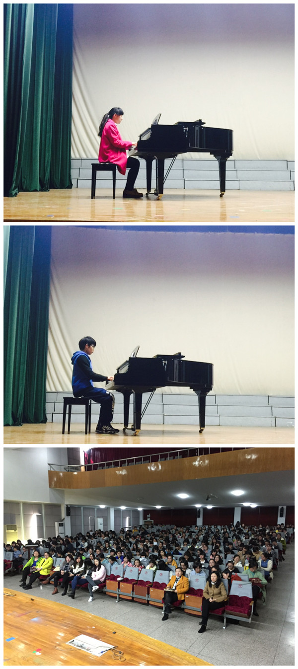 2015年3月25日下午,在音乐组全体教师的精心策划下,11级学生在我校演出厅举行了即兴弹唱的观摩活动。即兴弹唱是钢琴伴奏与声乐演唱技能的有机结合,是对学生音乐综合素质的考查。此次活动受到学校领导的高度重视。校党委书记潘建中、教务处主任郭捷、音乐组全体教师以及各班班主任均莅临活动现场。所有学生只有短暂的准备时间,拿到乐谱后需要即兴配置和声,编配伴奏织体,并流利地弹唱出来。观摩现场采用抽签方式,抽查出近40名学生到舞台展示。