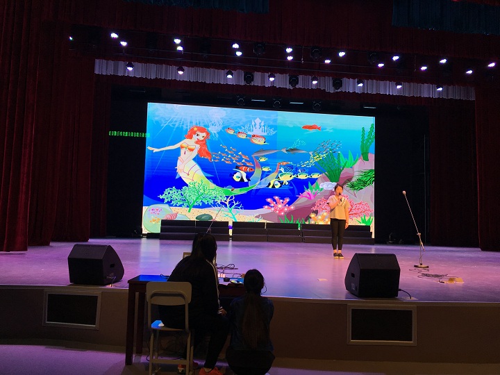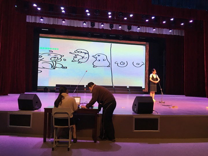 经过赛前将近1个月的精心准备,参赛选手们在台上都表现得十分出色。不论是叙述语言的表达,还是角色语言的把握,或是体态语言的演绎,选手们都运用自如,配上精美的背景,给台下的观众美妙的视听享受。其中郏辰芸同学的讲述诙谐生动,娓娓道来,虽首当其冲,却独占鳌头,成为本次比赛的焦点。