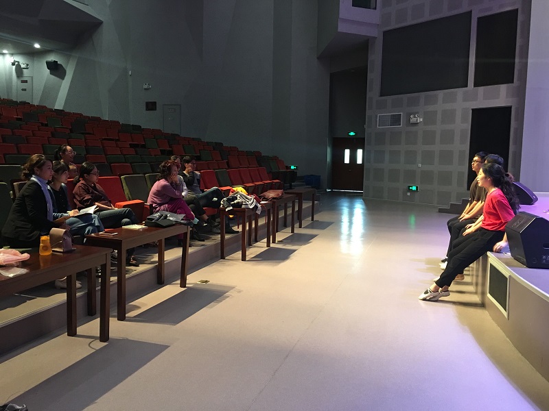观看完五名同学的舞蹈即兴表演以后,王老师针对每位同学的表演进行了深刻的分析,从形象的捕捉、主题的表现、动作的对比、夸张表现力、幼儿舞蹈的空间等几个方面深入浅出的进行讲解。