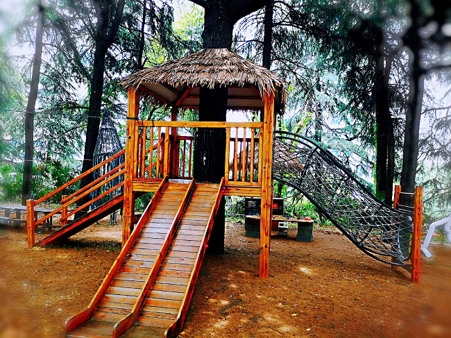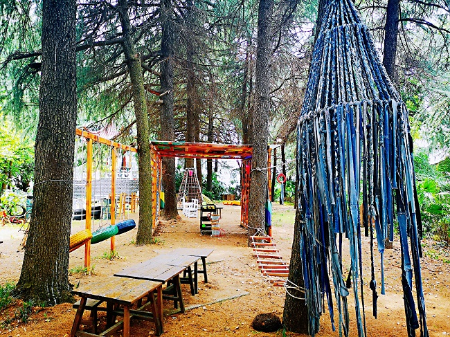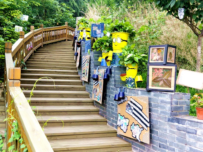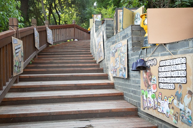 总园依据地形优势和资源,结合笪家山的天然优势和生态资源,创设出一个奇妙的童真世界,集体育锻炼与探索活动为一体的游戏天地“笪学园”