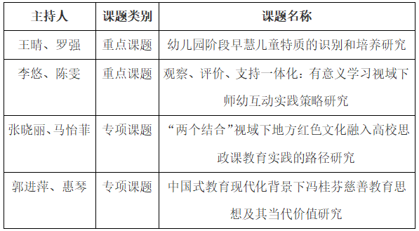 【立项通知】我校课题成功立项江苏省教育科学“十四五”规划2024年度课题的通知 来源: 发布时间:2024-10-18 14:34:21 浏览次数: 次 【字体:小 大】 根据《关于组织申报2024年度省教育科学规划课题的通知》要求,经江苏省教育科学规划领导小组办公室组织专家评审,我校共4项课题成功立项为江苏省教育科学“十四五”规划2024年度课题。具体立项名单见附件。 202410181652577638.pdf 分享到: 【打印正文】