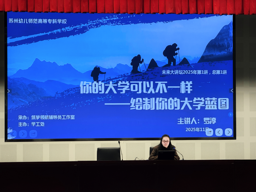 未来大讲堂,点亮成长路。为帮助2025级新生科学规划大学生活,开启充实精彩的人生旅程,11月19日下午,由学生工作处主办、筑梦领航辅导员工作室承办的“未来大讲堂”第一讲在照怀楼报告厅顺利举行。本次讲座以“你的大学可以不一样——绘制你的大学蓝图”为主题,为2025级学生带来一堂富有启发意义的“大学第一课”。