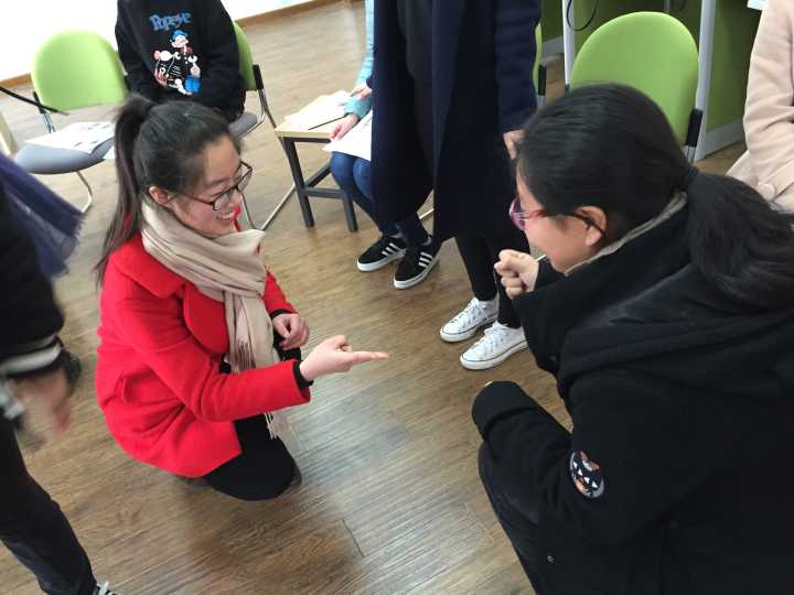 2016年3月14日中午,我校心理团体辅导室内一片欢声笑语。在学校心理咨询室的何冬怡老师的带领下,苏幼心理协会的同学们参与体验了“抓手指游戏”、“人类进化”、“体会压力”等团体辅导游戏,同时学习着怎样带领同学们开展这些团体游戏活动。