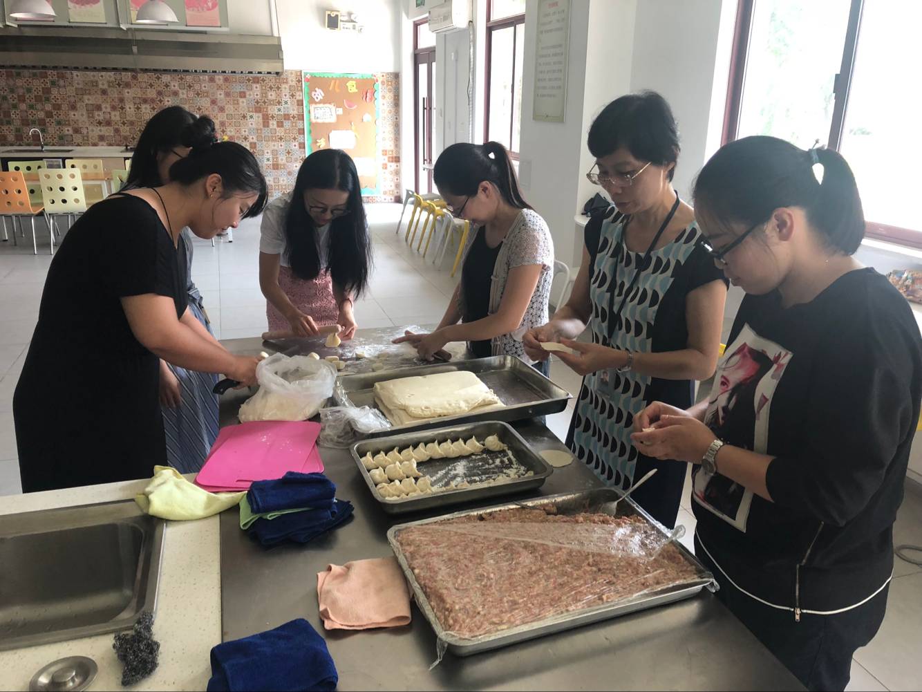 碧云天,黄花地。9月19日中午,学工处在生活体验馆举办了包饺子的活动。学工处所有成员以及学工条线的相关教职工都积极参与,其乐融融。教职工们纷纷捋起袖子,忙活起来,切面、擀饺子皮、包饺子、烧水、下饺子……大家忙得不亦乐乎,气氛欢快而轻松,温馨的场面俨然一个快乐祥和的大家庭。
