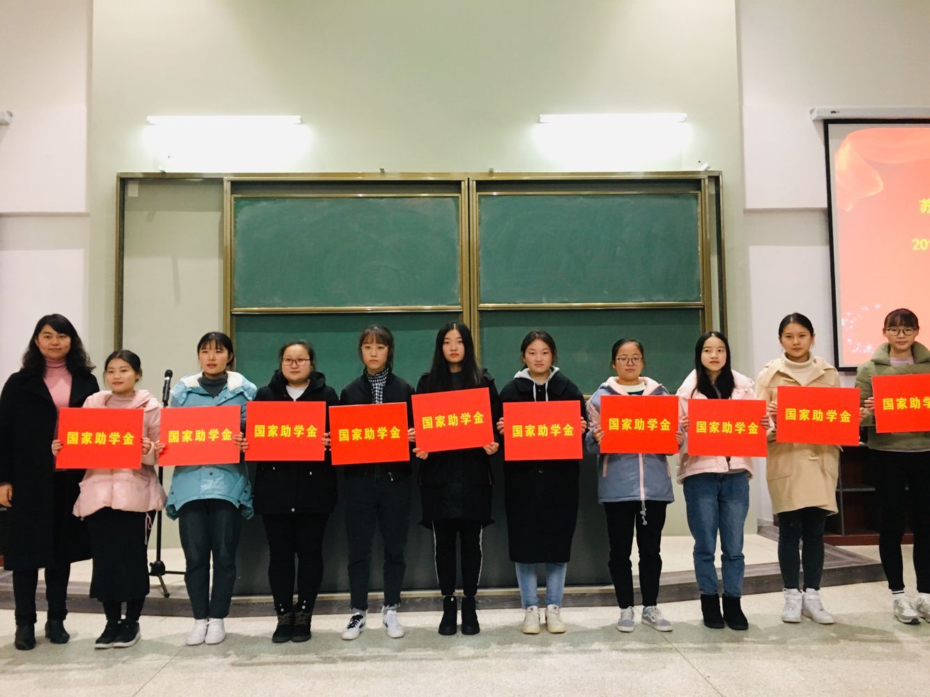 会议首先由学工处处长肖蕾汇报2018年我校国家奖助学金的获奖情况:1人获得国家奖学金,37人获得国家励志奖学金198人获得国家助学金随后由肖蕾处长、学前二系以及艺术系的学工负责人蒋朝群、高鑫老师为获奖同学颁发奖状并与同学们合影留念。接着,学前二系2016级雷玉红、学前二系2017级张姁婧两位同学分别代表获国家奖学金及助学金同学进行发言,他们表示一定会一如既往的努力进取,刻苦学习,以优异的成绩报答国家和学校的帮助,报答这个充满爱心的社会。将来学好了知识和本领,把这份暖暖的爱心传递下去,为建设爱心社会,建设和谐中国奉献自己的一份力量。