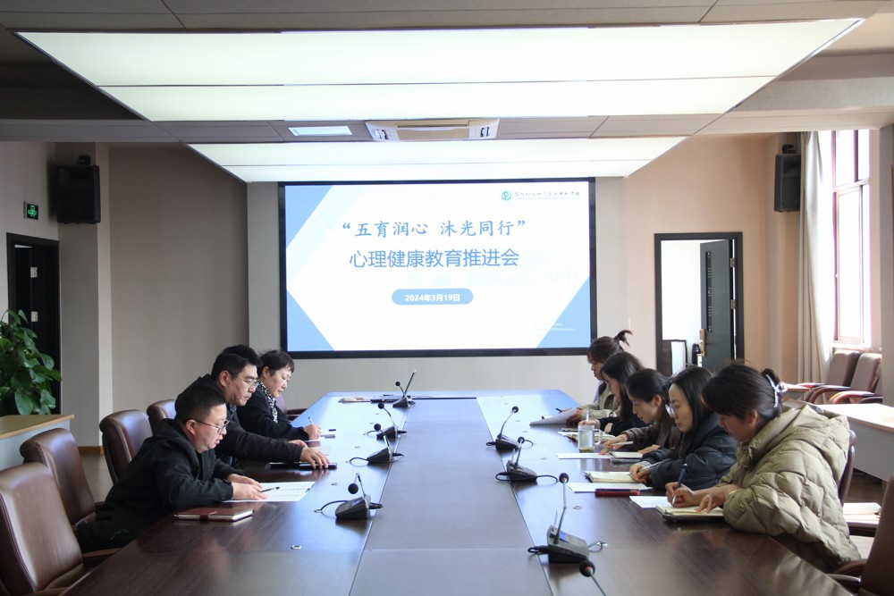 周慧明解读了省教育厅关于组织开展“五育润心 沐光同行”心理健康教育活动的相关要求,介绍了学校五育润心工作的具体分工和任务要求。与会各部门负责人结合任务分工各抒己见,分别从“以德育心”、“以智慧心”、“以体强心”、“以美润心”、“以劳健心”层面进行了充分探讨。