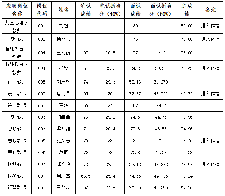 学校2023年公开招聘高层人才面试及总成绩公示